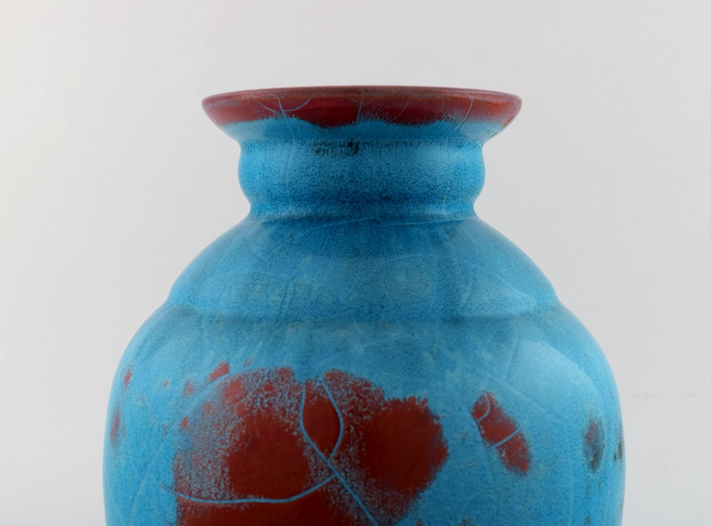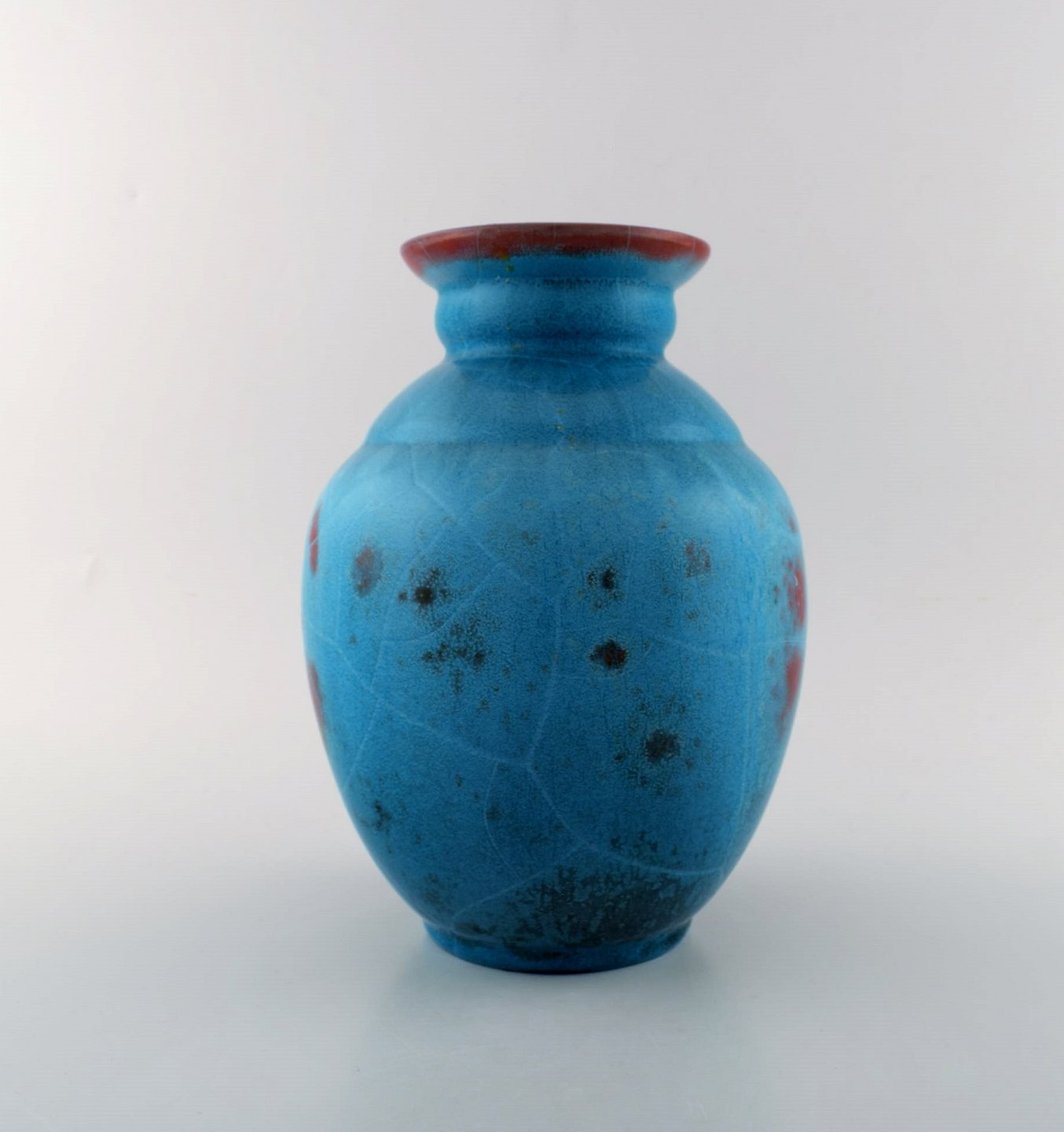 Ipsens enke art deco keramikvase. Smuk turkis glasur. 1940/50'erne. Måler 25 x 19,5 cm. I perfekt stand. Stemplet.