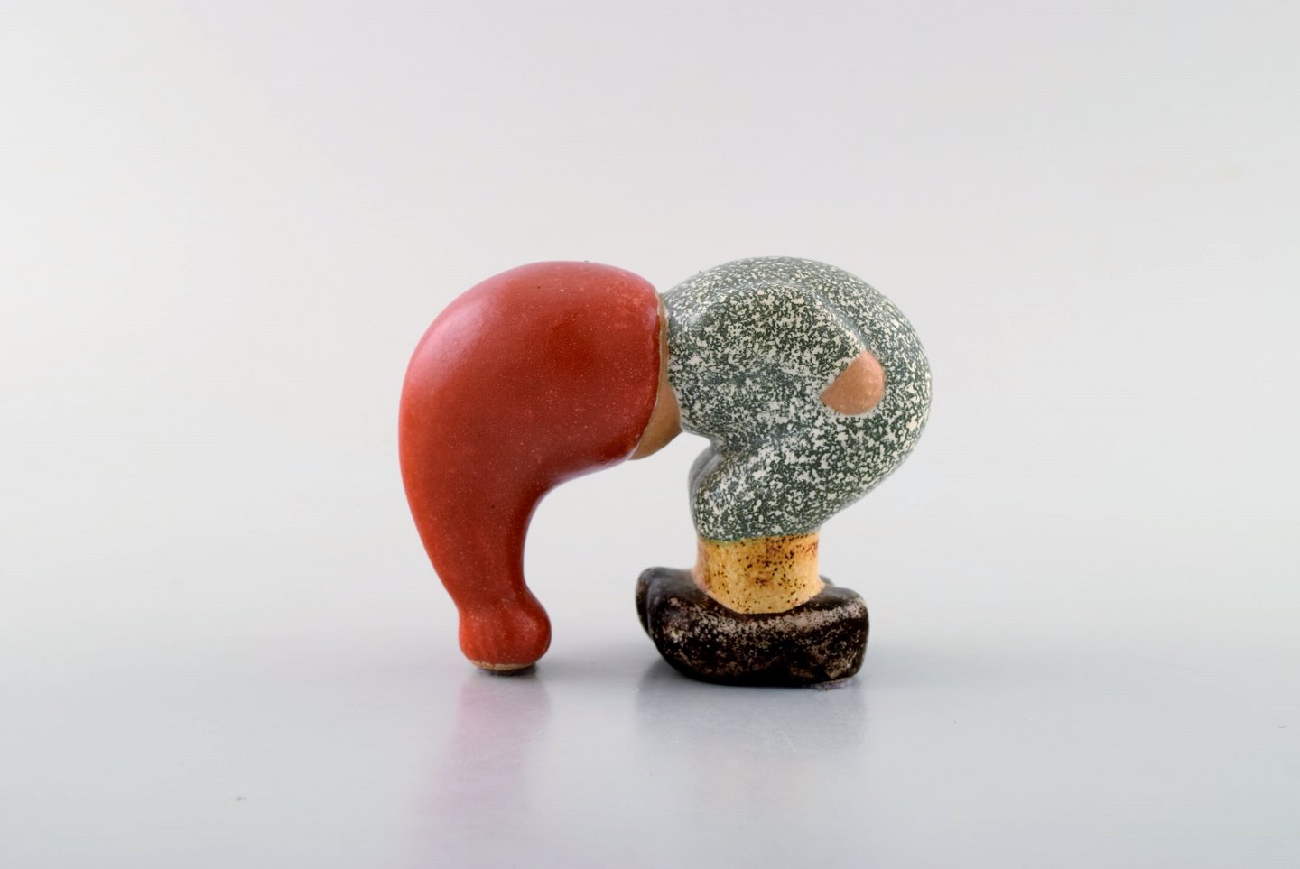 Sjælden Lisa Larson for Gustavsberg. Nisse i glaseret stentøj. 1990'erne. I flot stand. Måler: 9,5 x 7,5 cm. Signeret.