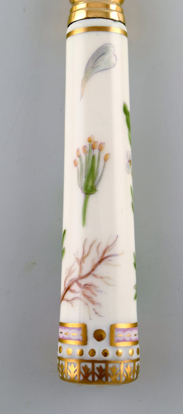 Michelsen for Royal Copenhagen. "Flora Danica" frokostgaffel af forgyldt sterlingsølv. Skafte af porcelæn dekoreret i farver og guld med blomster.