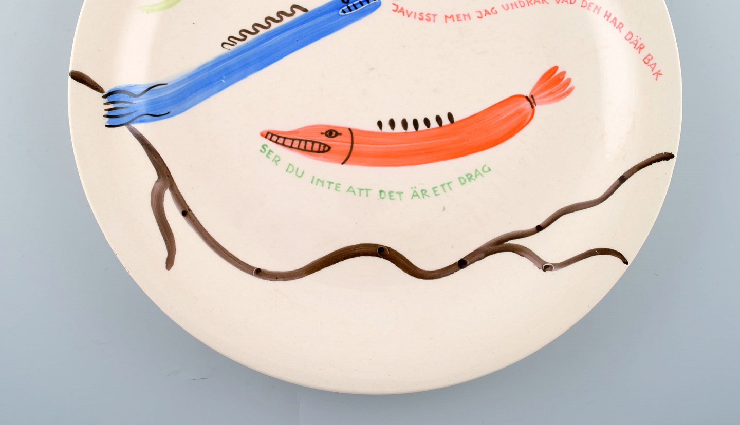 Stig Lindberg for Gustavsberg. "Löja" tallerken. Håndmalet med fiskemotiver. 1950'erne. I perfekt stand. Måler: 24,5 cm. Signeret.