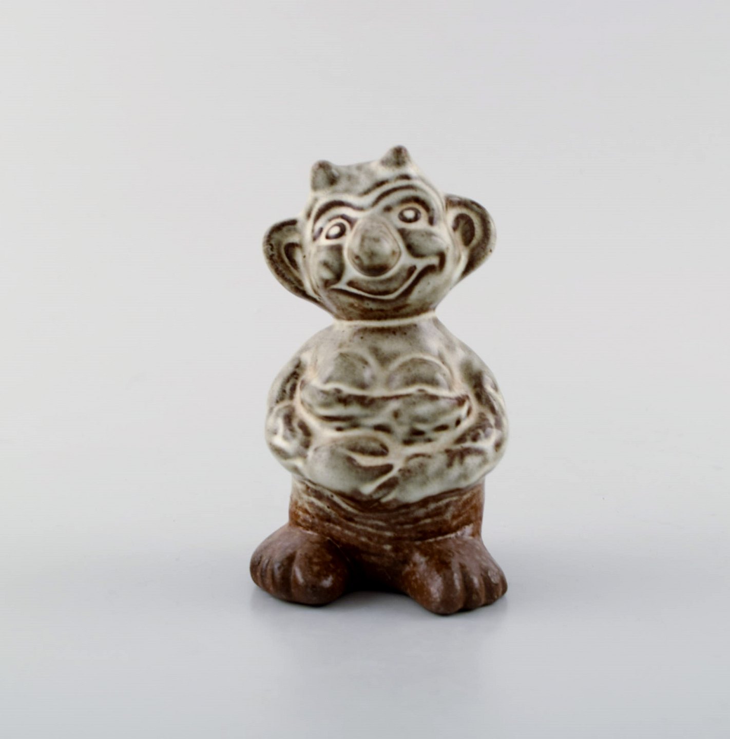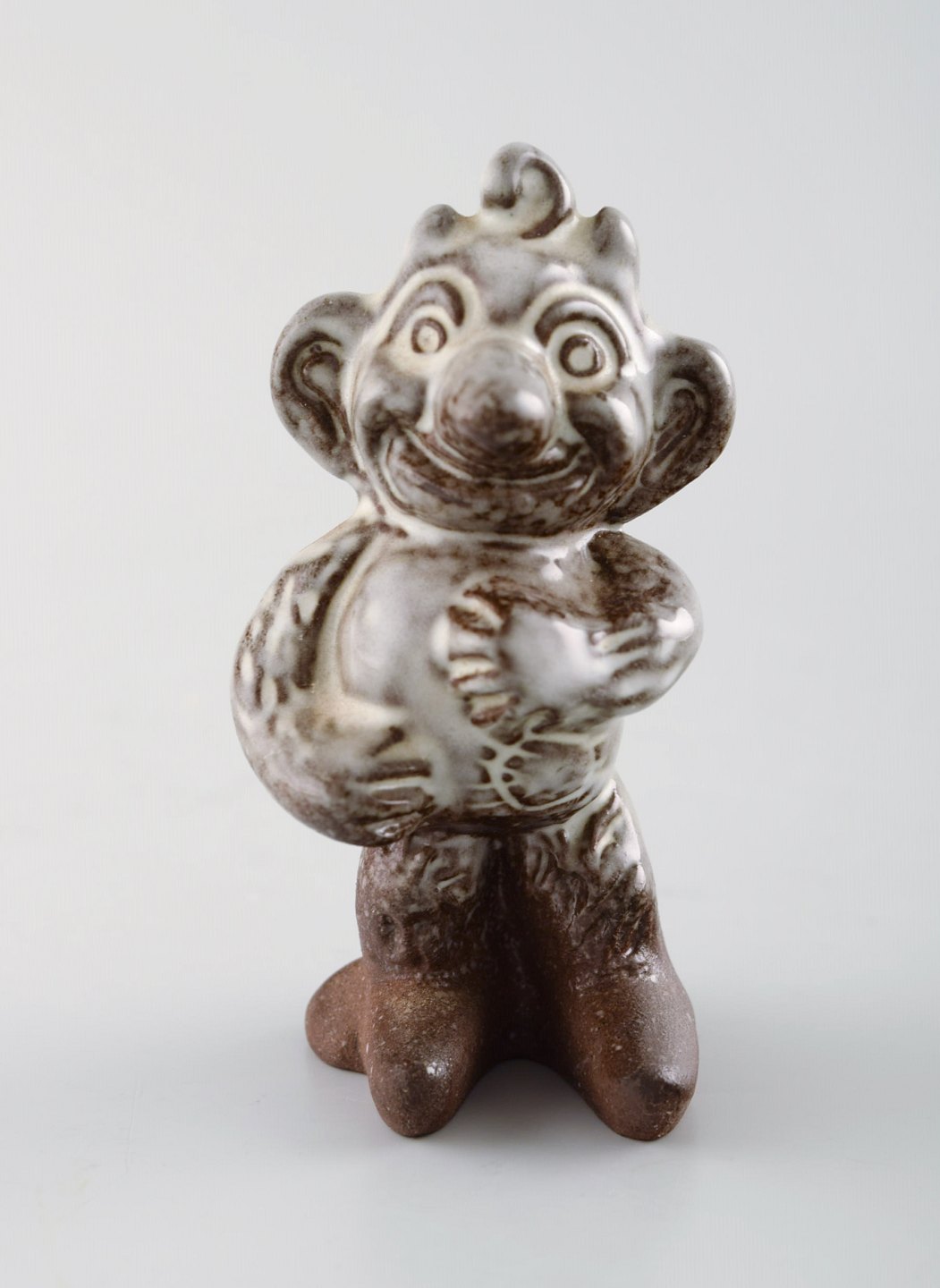 Michael Andersen keramik fra Bornholm. Tre håndmalede figurer. Formgivet af Ludvig Mahler. Krøllebølle-familie.