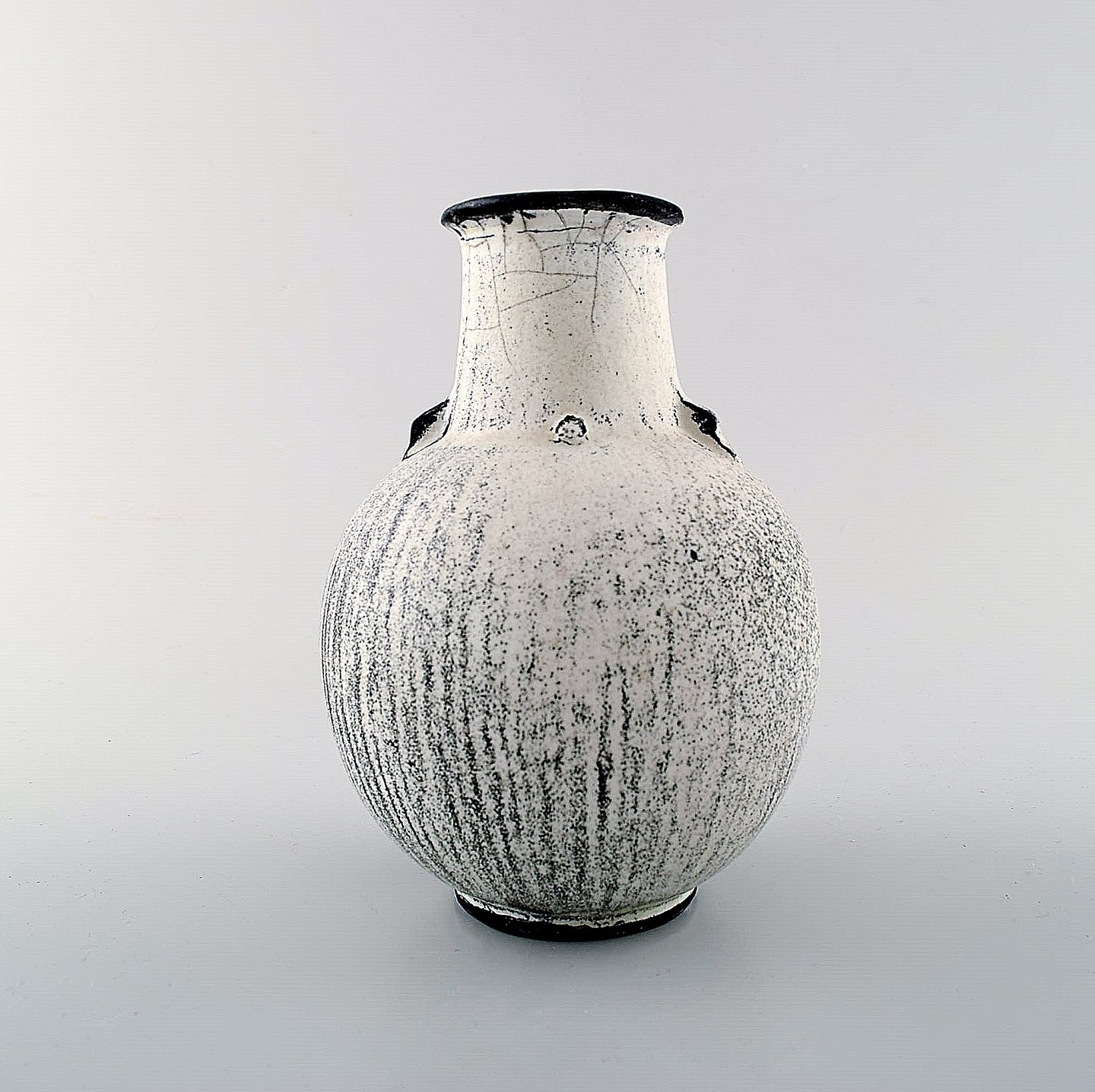 Kähler, HAK, glaseret stentøjsvase, 1930'erne. Designet af Svend Hammershøi. Smuk gråsort dobbeltglasur. Måler : 15 x 11,5 cm. Stemplet. I perfekt stand.