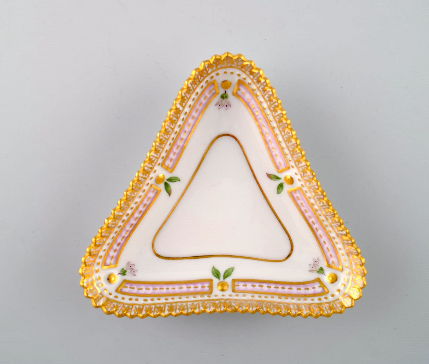 Royal Copenhagen Flora Danica triangular cream cup. Dessin # 20/3575 with branch shaped handle and flowers.