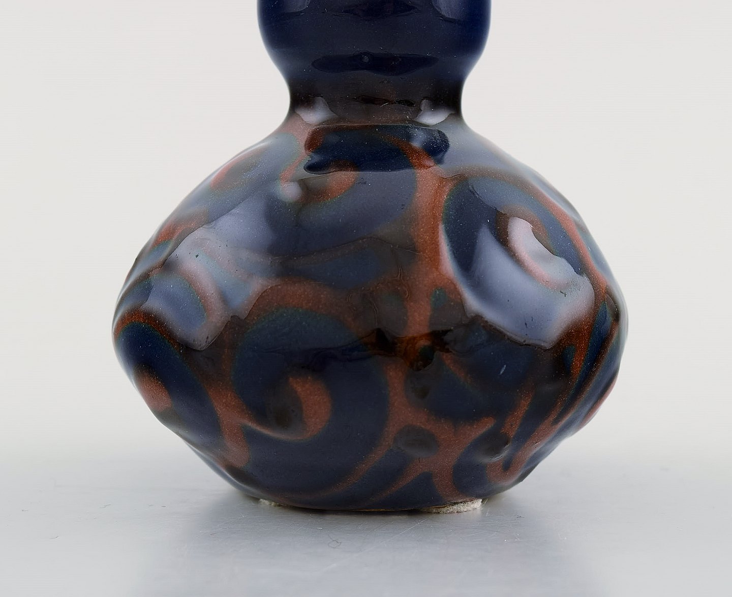 Kähler, HAK, glaseret stentøjsvase i moderne design. 1930/40´erne. Kohornsteknik. Stemplet. Måler : 11,5 x 9 cm. I perfekt stand.