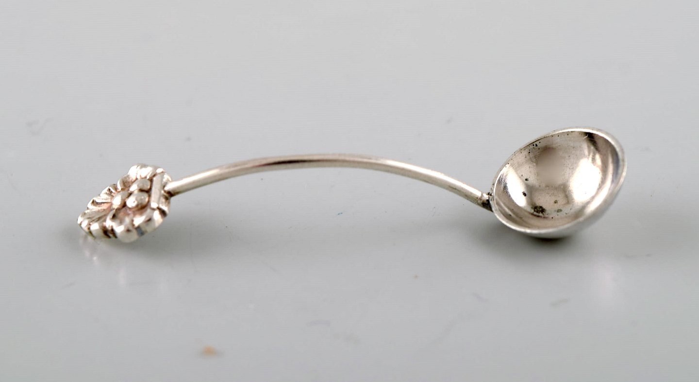 Franz Hingelberg. 4 saltkar med tilhørende ske i sterlingsølv. Modelnummer 1089 D. Saltkaret måler: 9 x 2,2 cm. Skeen måler: 5,5 cm I perfekt stand. Stemplet.