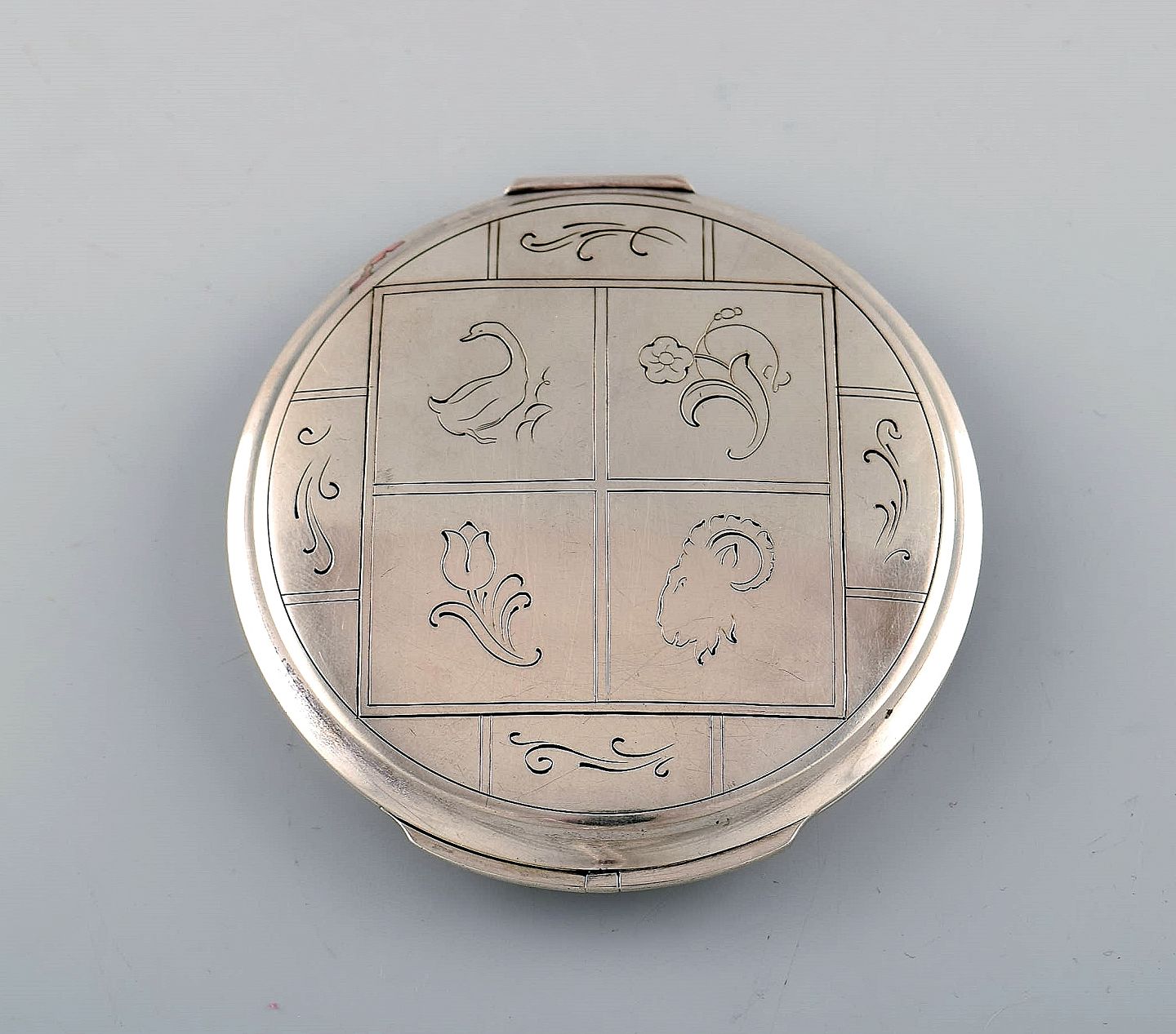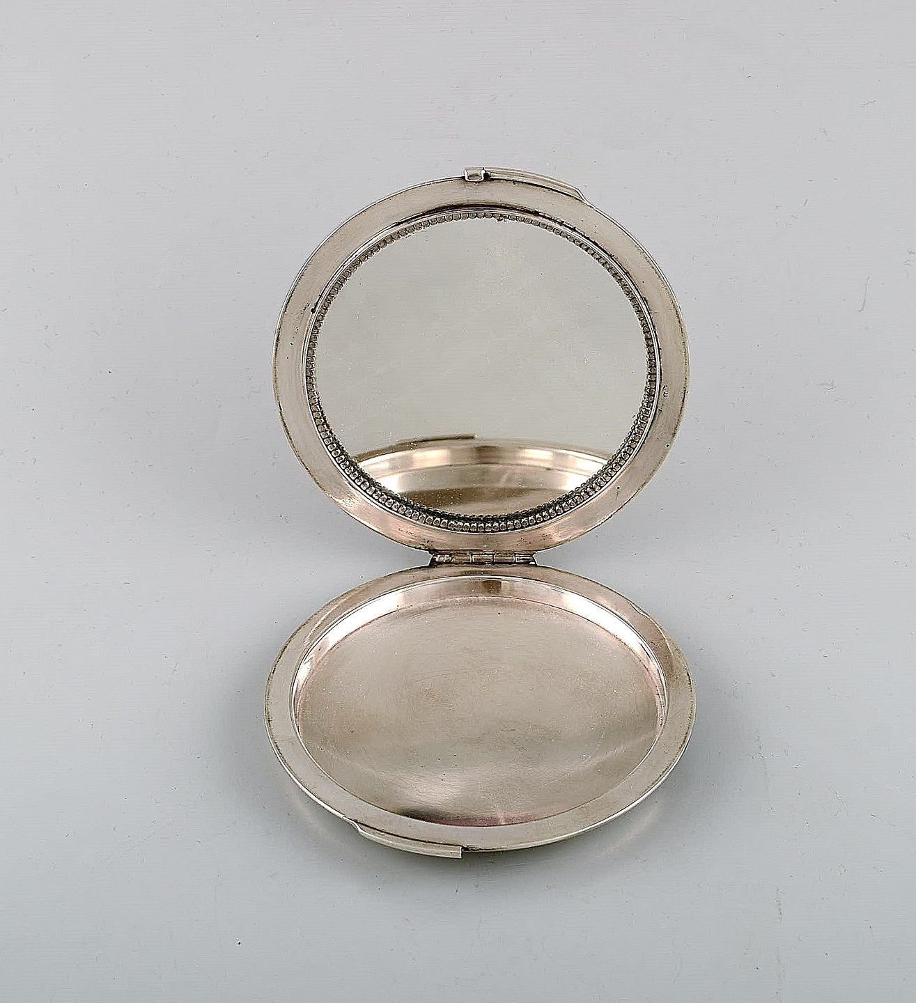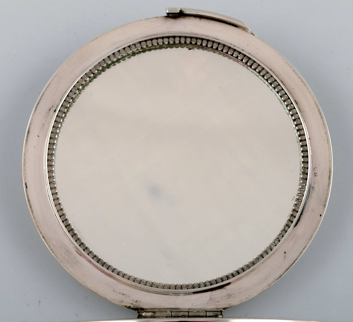 Harald Nielsen for Georg Jensen. Art deco pudderdåse med spejl i sterlingsølv. Modelnummer 231D. I flot stand. Stemplet. Diameter: 10 cm.