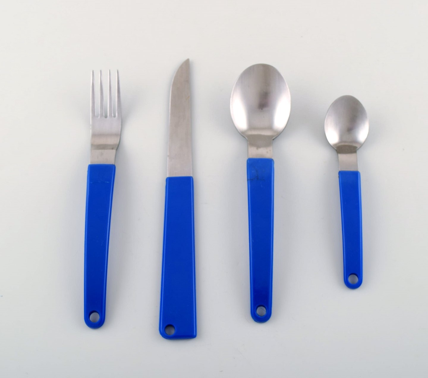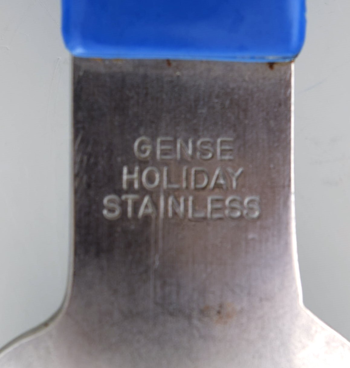 Gense, Sverige. Holiday middagsservice, bestik til fire personer i rustfrit stål og mørkeblåt melaminplast. 1960'erne. I flot stand. Stemplet. Kniven måler: 20,5 cm.