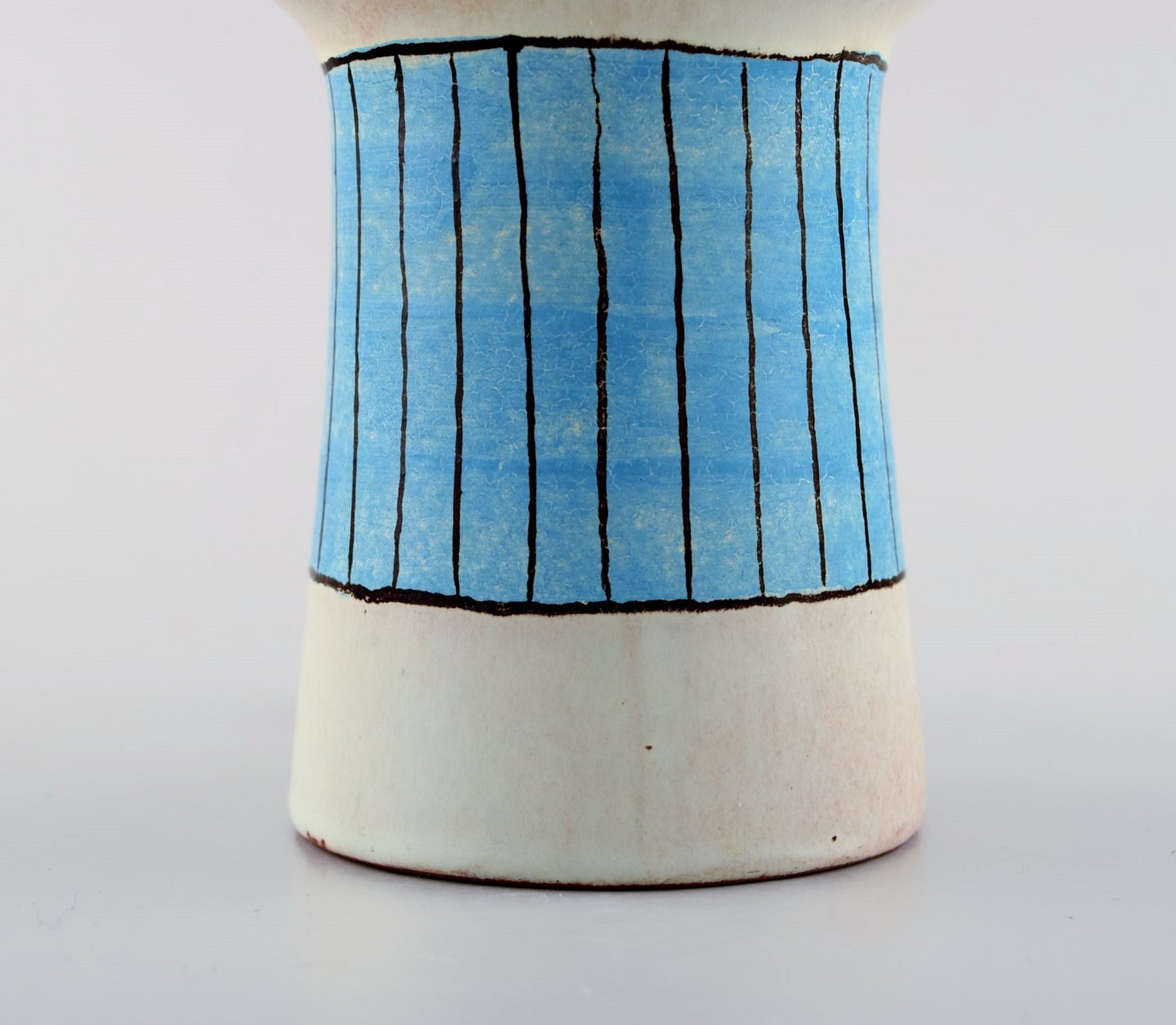 Carl-Harry Stålhane for Rörstrand/Rørstrand. Et par modernistiske håndmalede "Torro" vaser / kander med hank. Lyseblå og sort glasur på cremefarvet baggrund. 1960'erne.
