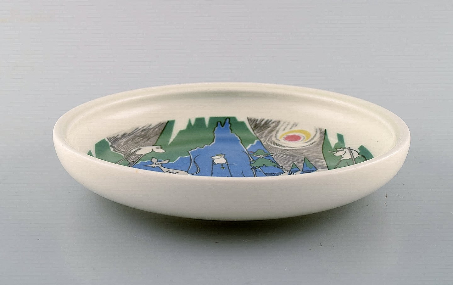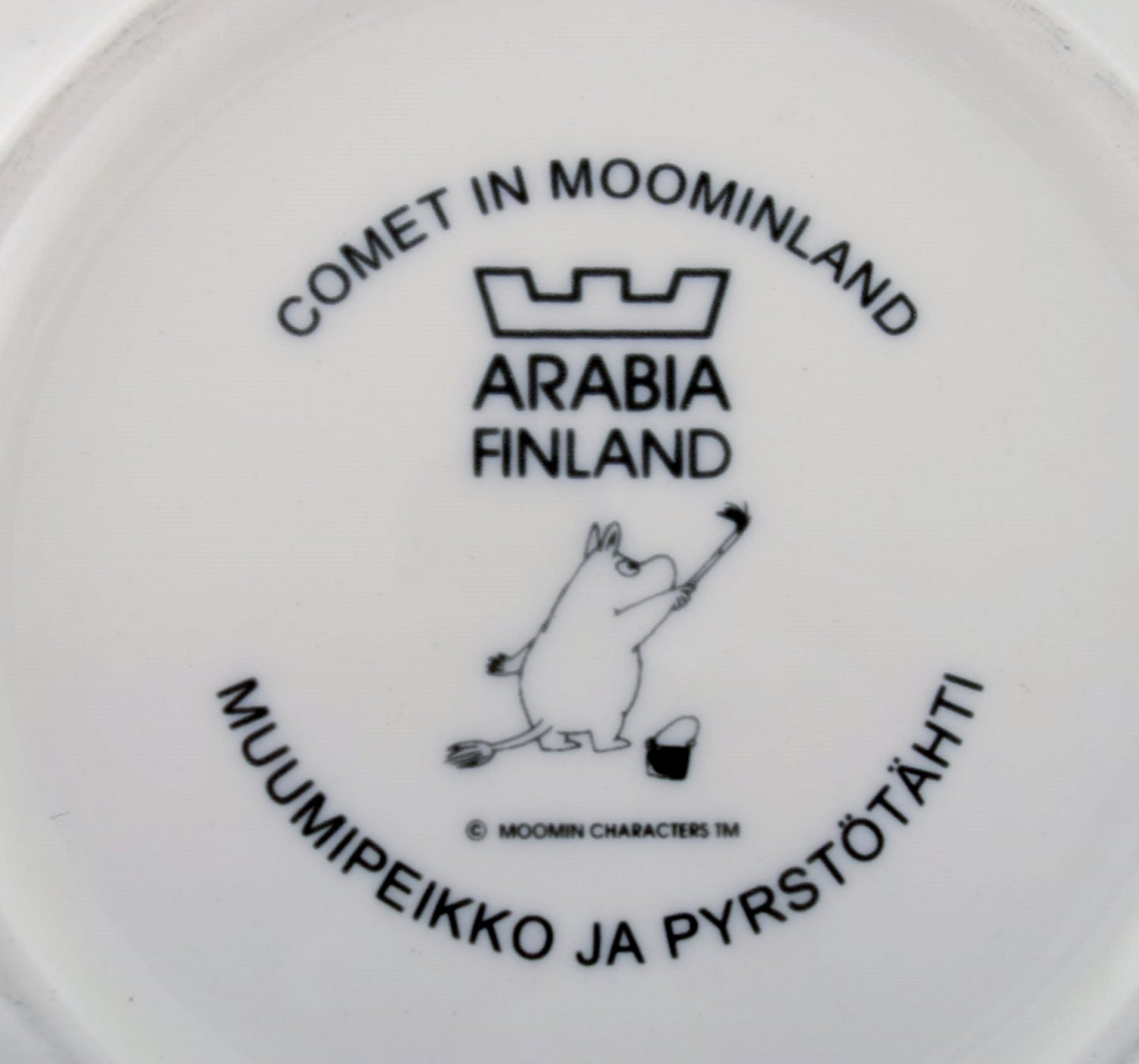 Arabia, Finland. Tallerken i porcelæn med motiv fra Mumitroldene. Sent 1900-tallet. "Comet in moominland" I flot stand. Stemplet. Måler: 18 x 3 cm.