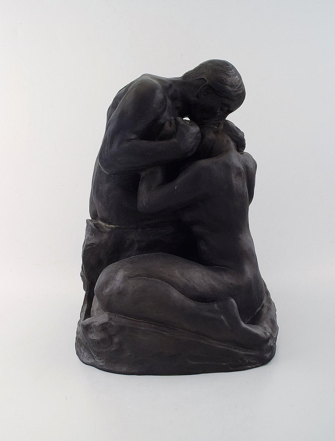 Carla M. Christiansen for L. Hjorth, Bornholm. Stor terracotta skulptur af kyssende par. Dateret 1919.
