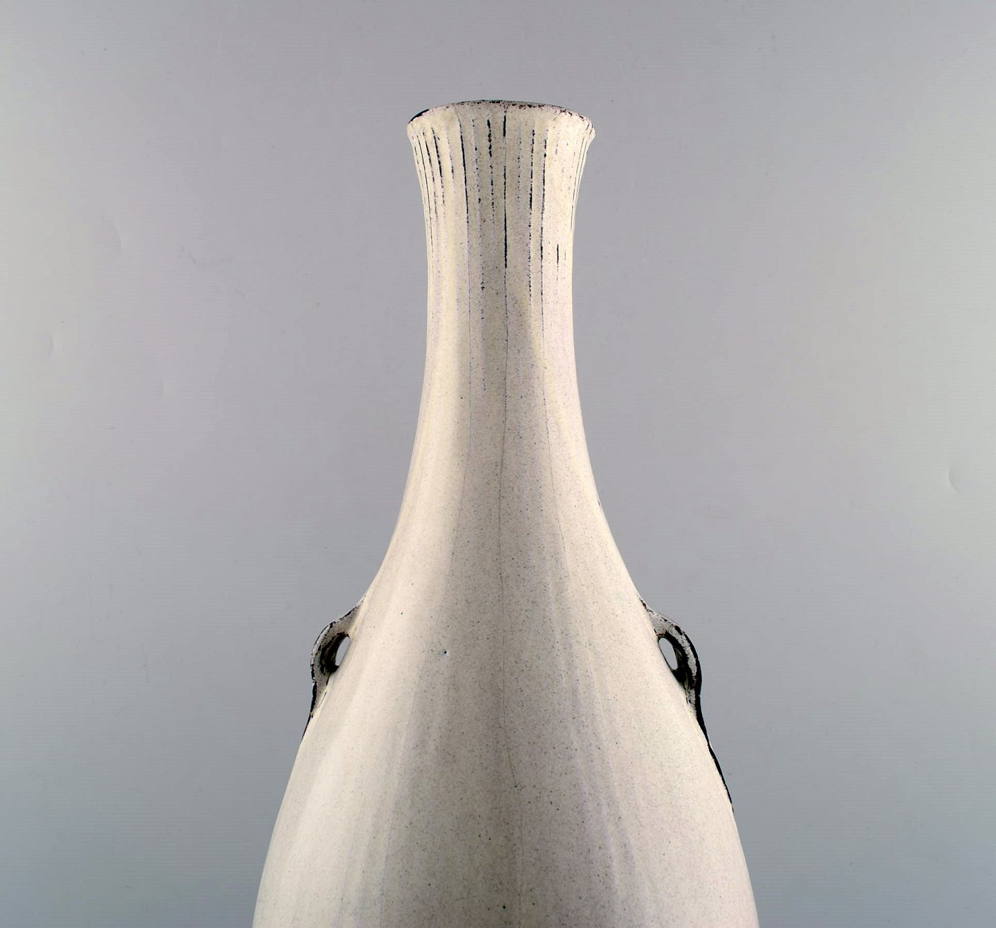 Svend Hammershøi for Kähler, HAK. Stor glaseret gulvvase i stentøj. Smuk sort/grå dobbeltglasur. 1930/40'erne. I flot stand. Stemplet. Måler: 47 x 20 cm.