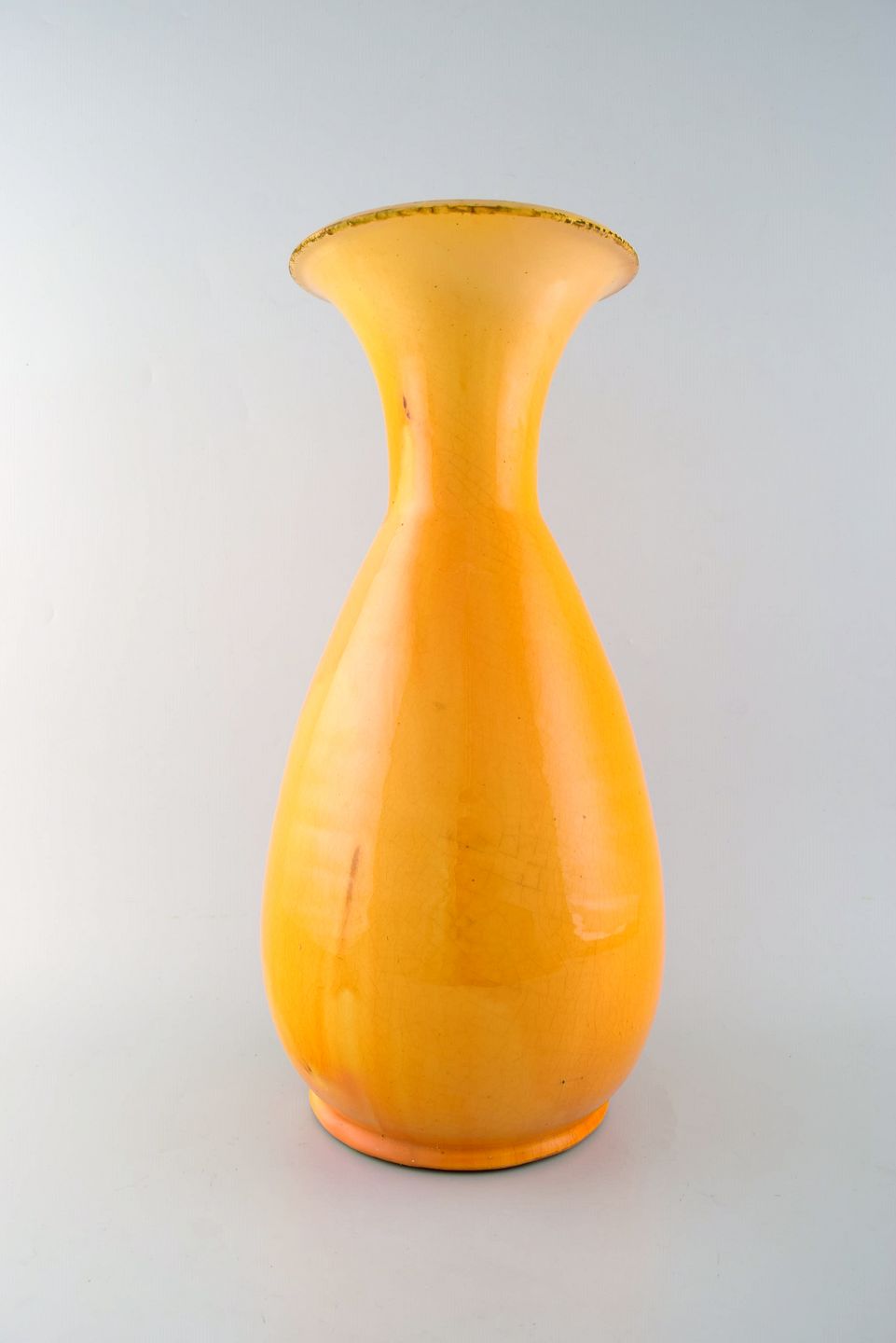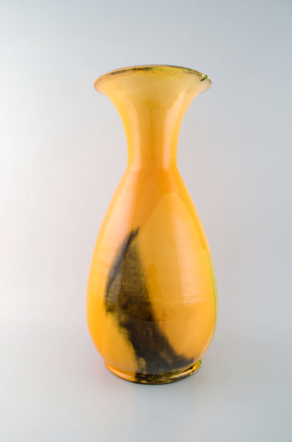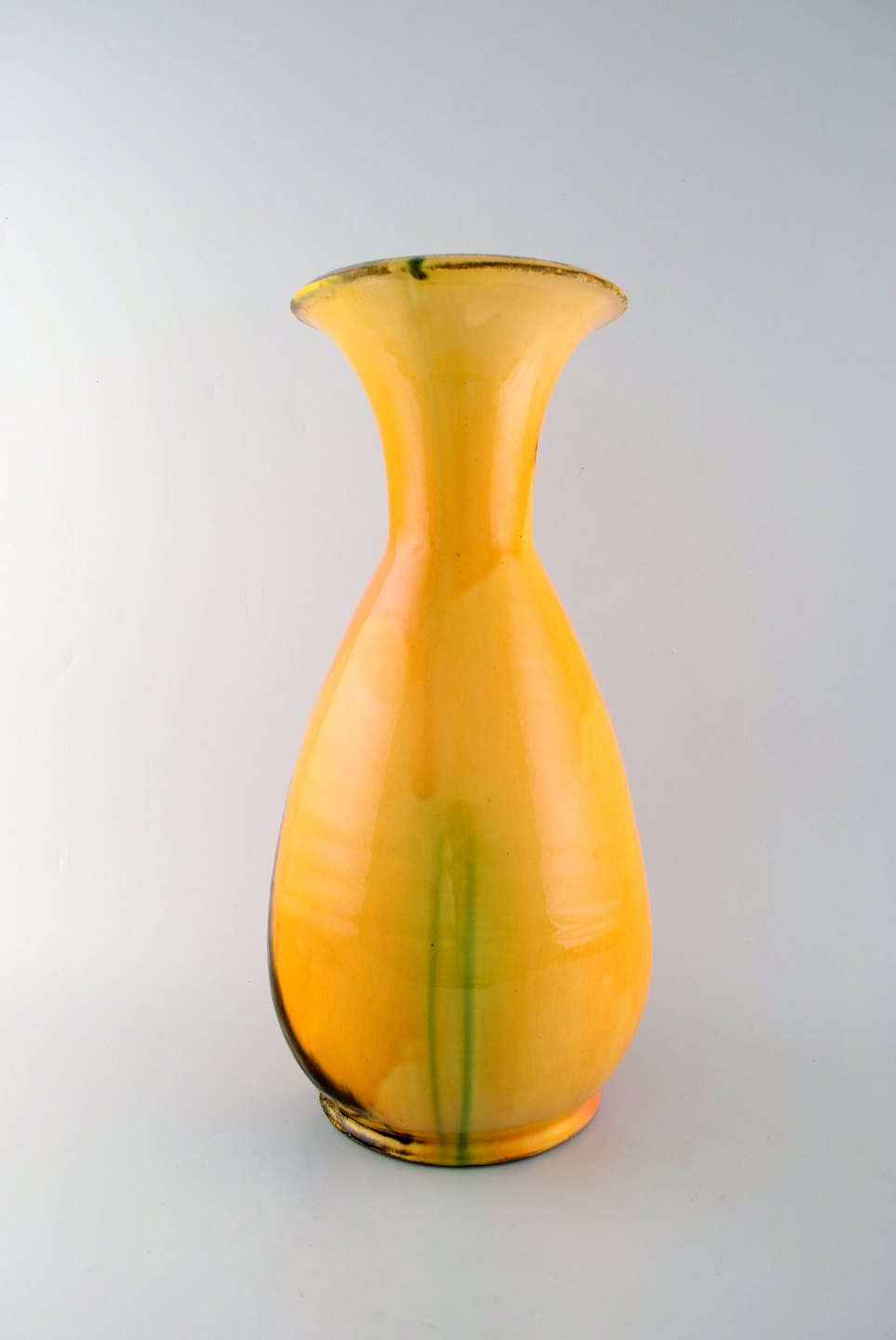 Svend Hammershøi for Kähler, HAK. Stor glaseret gulvvase i stentøj. Smuk urangul glasur. 1930/40'erne. I flot stand. Stemplet. Måler: 42 x 22 cm.