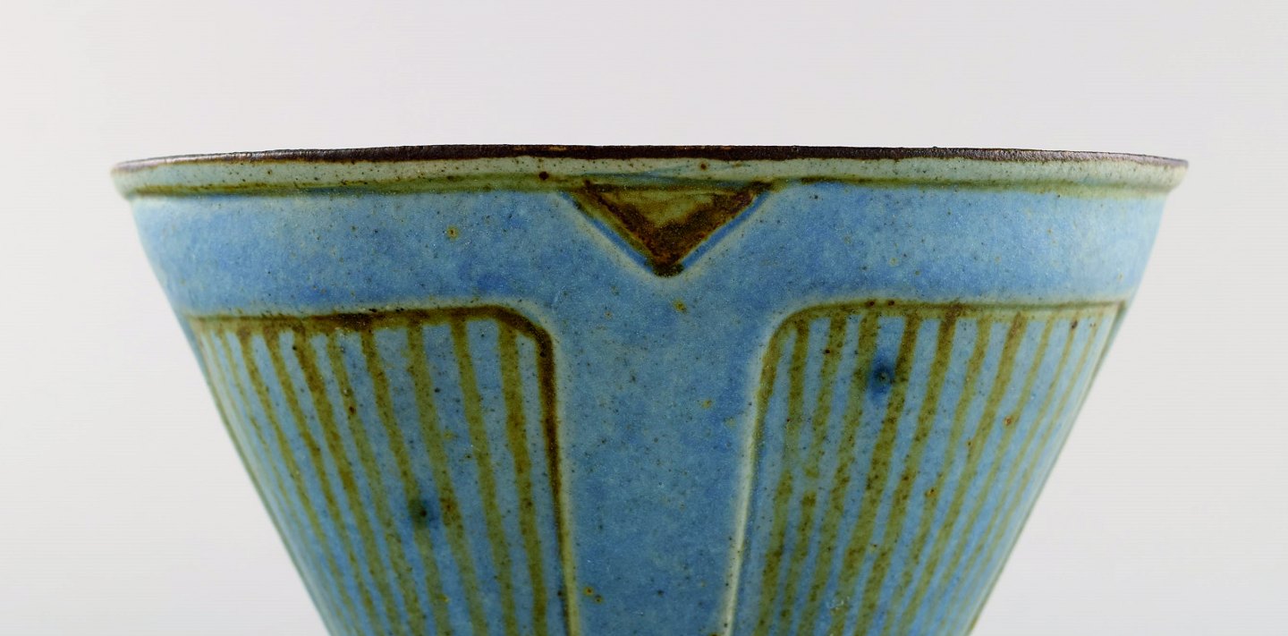 Beate Andersen, dansk keramiker. Unika vase i glaseret keramik. Dateret 1987. Smuk glasur i blå og grønne nuancer.