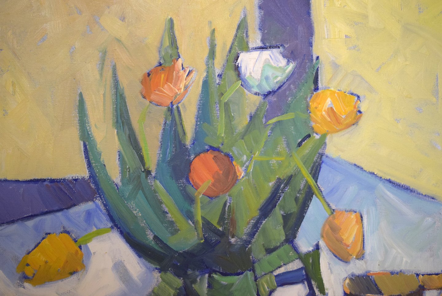 Clemmen Clemmensen (1885-1964), dansk maler. Stilleben med blomster og frugter. Olie på lærred. 1961. I flot stand. Signeret og dateret. Pladen måler: 74 x 65 cm. Rammen måler: 5 cm.