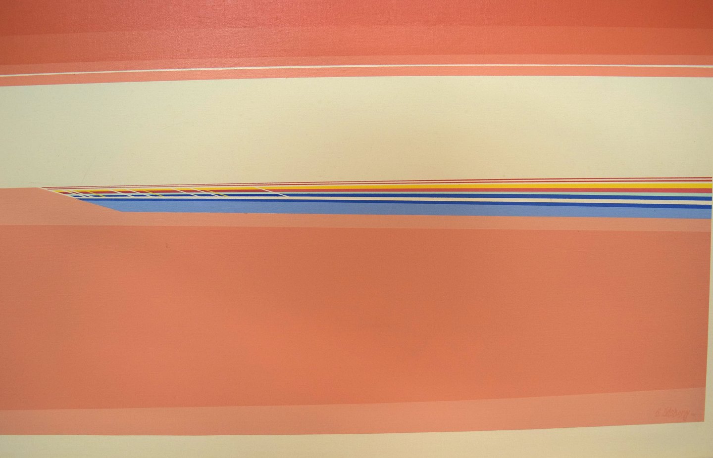 Søren Edsberg, danskfødt amerikansk maler. Olie på lærred. Abstrakt komposition. 1960/70'erne. Stort maleri.