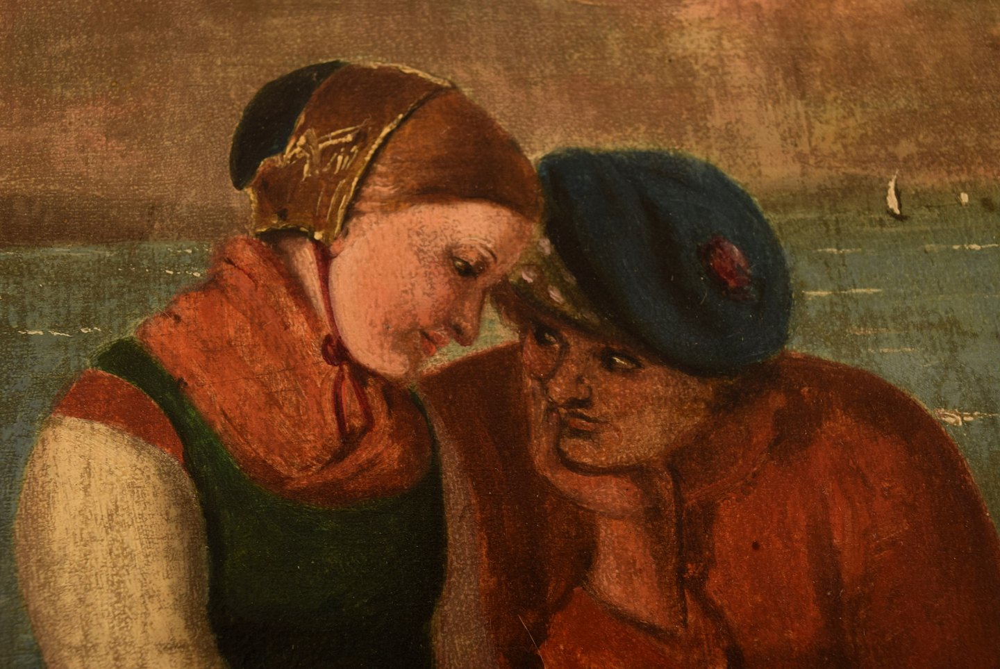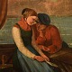 Engelsk genremaler. Romantisk scene. Ungt par. Olie på lærred. 1800-tallet. I flot stand. Lærredet måler: 34 x 27 cm. Rammen måler: 3,5 cm.