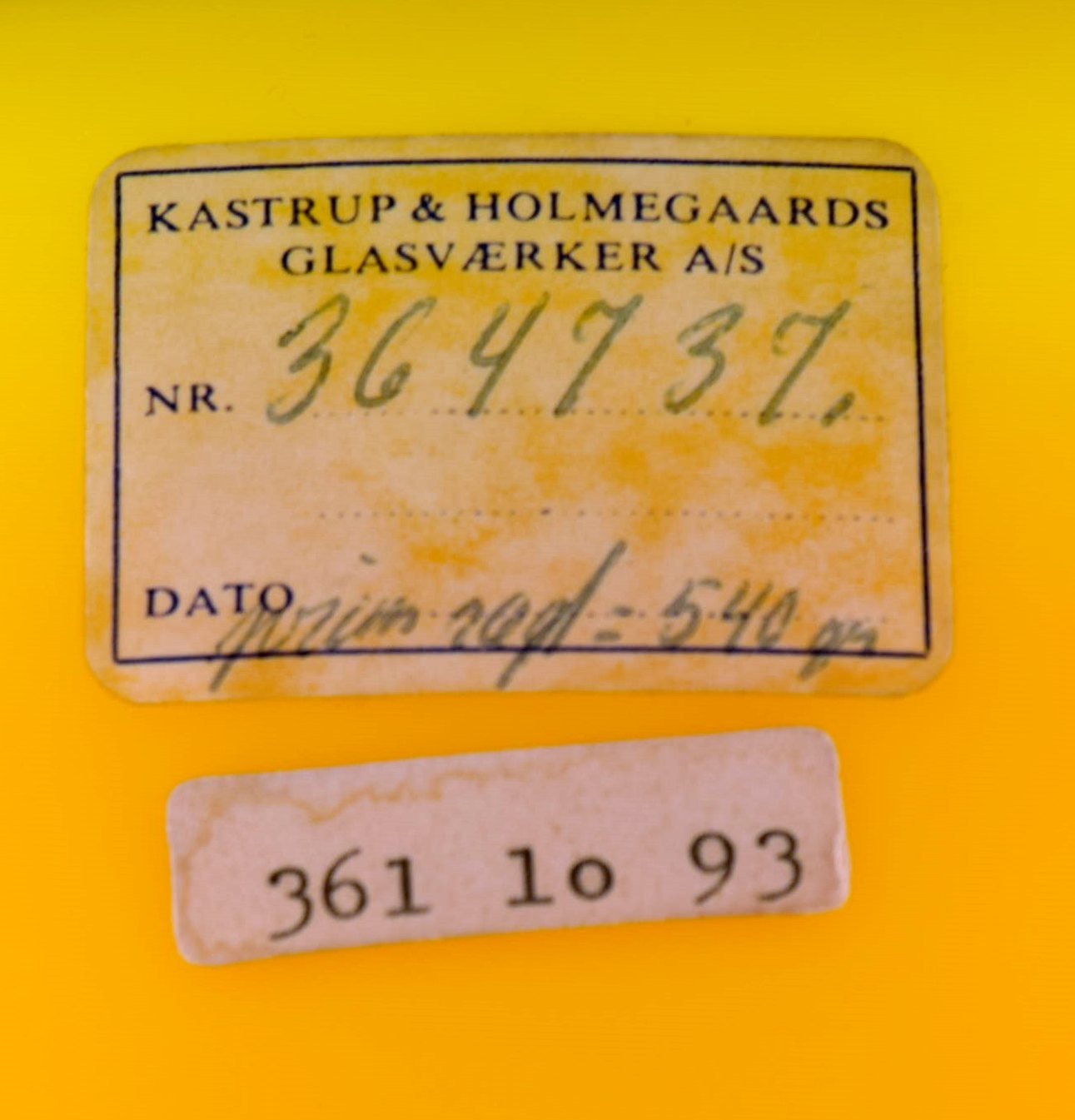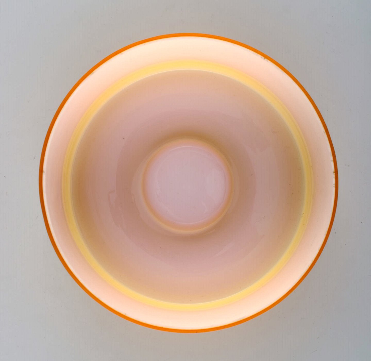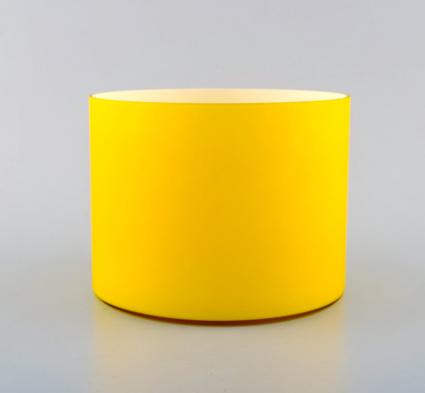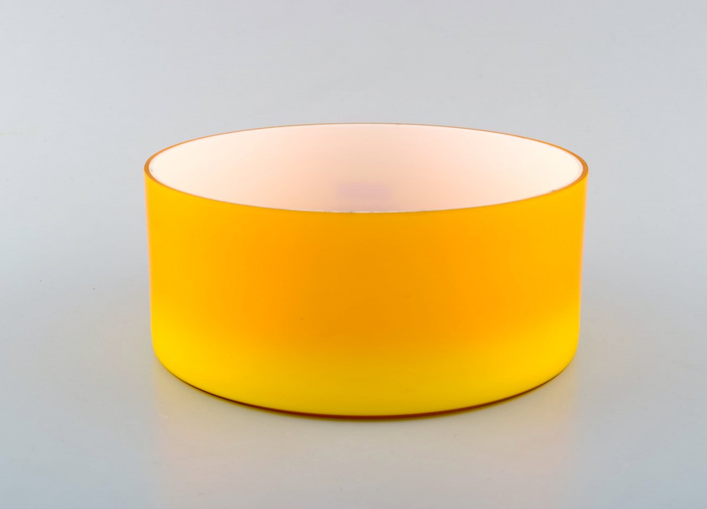 Kastrup / Holmegaard. Et par store skåle i gul opalineglas. 1960'erne. I flot stand. Mærkat. Største måler: 18 x 8 cm. Mindste måler: 15 x 12 cm.