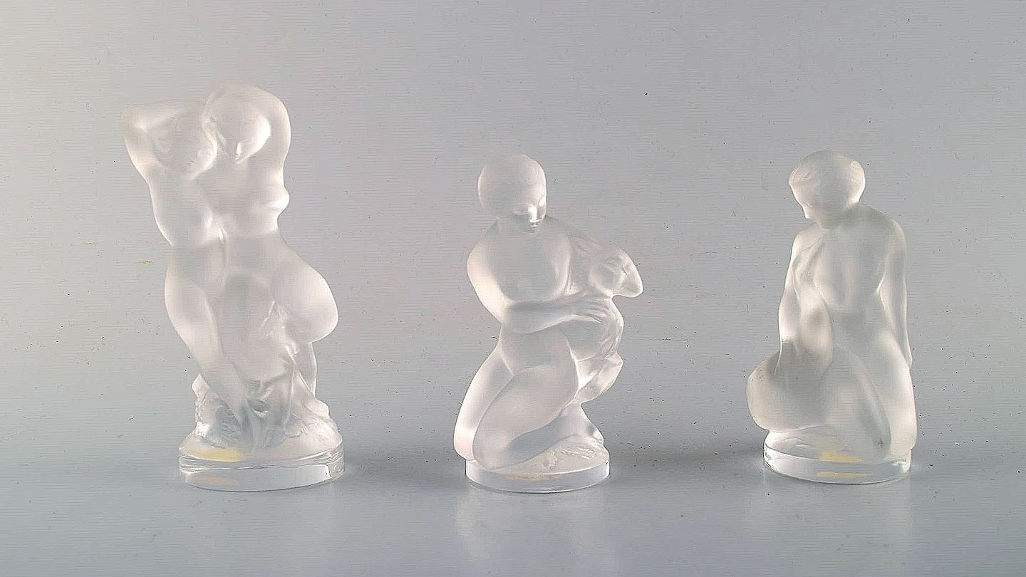 Lalique. Tre kvindefigurer i klart kunstglas. 1960'erne.
