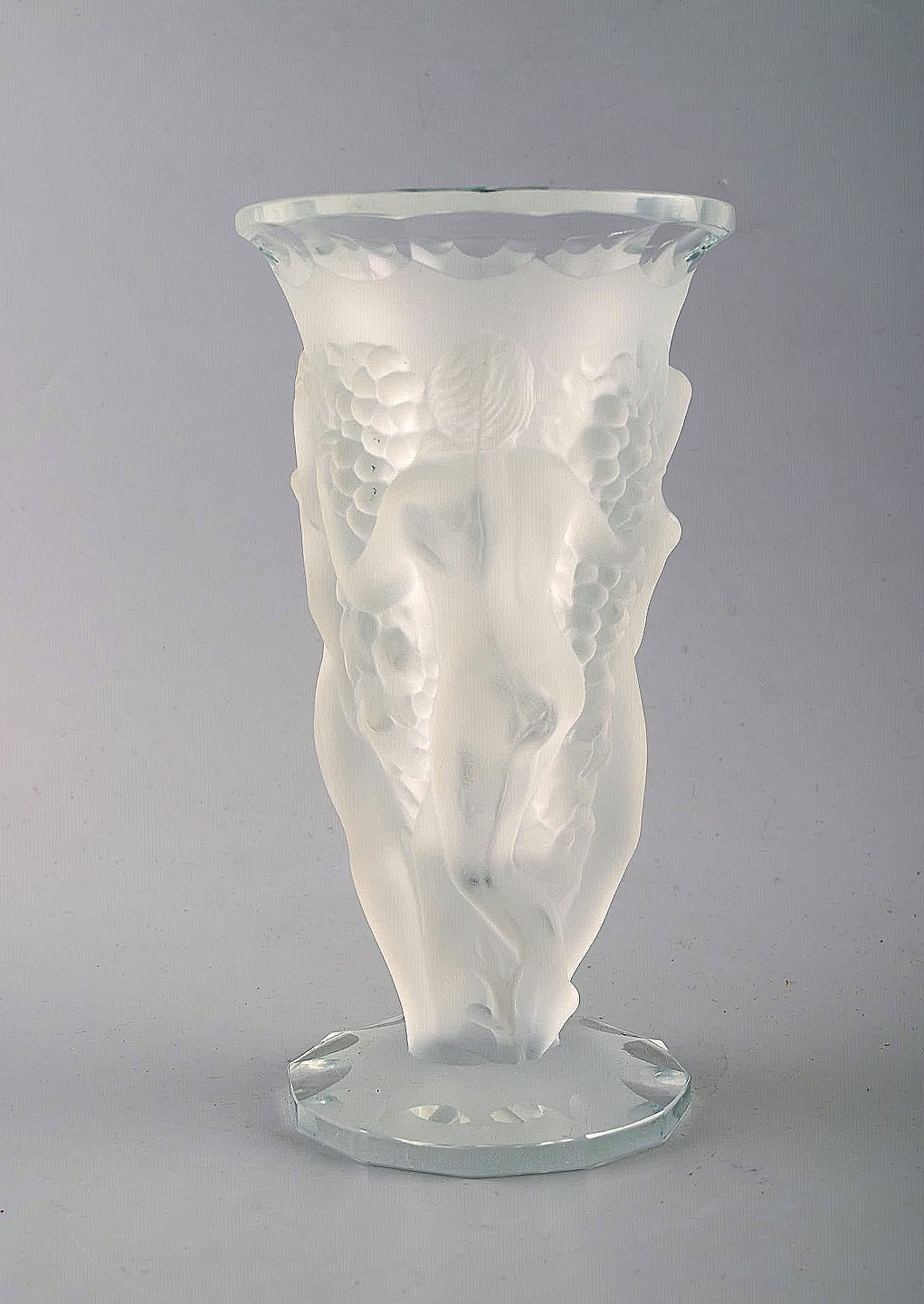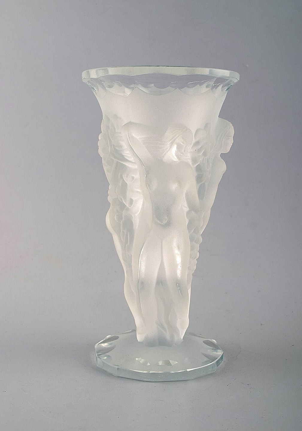 René Lalique "Bacchantes" vase i klart kunstglas dekoreret med dansende nymfer. 1930'erne.