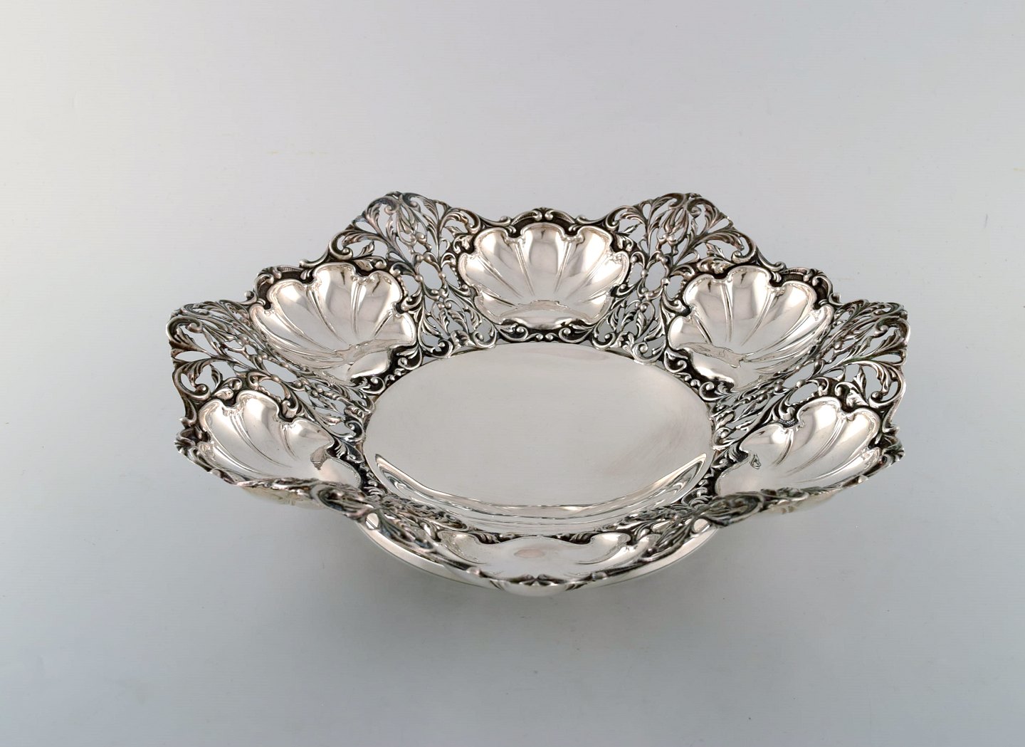 Stor gennembrudt sølvskål med bladværk. 1930'erne. I flot stand. Måler: 33 x 8 cm.