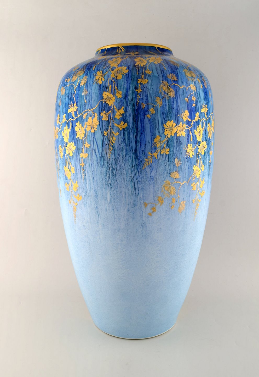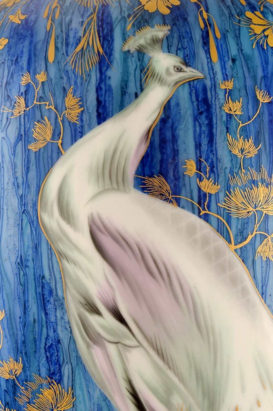 Heinrich, SELB Bavaria Germany. Stor håndmalet porcelænsvase med påfugl og blade i gulddekoration. 1960'erne. I flot stand. Stemplet. Måler: 55 x 31,5 cm.