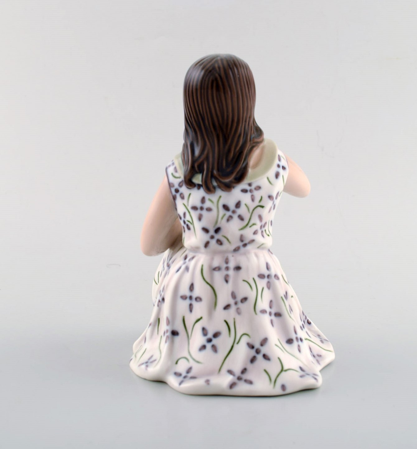 Dahl Jensen porcelænsfigur. Anne med fugl. Modelnummer 1366. 1. Sortering. 1920/30'erne. I flot stand. Måler: 14,5 x 12 cm. Signeret: Kongekrone , DJ Copenhagen.