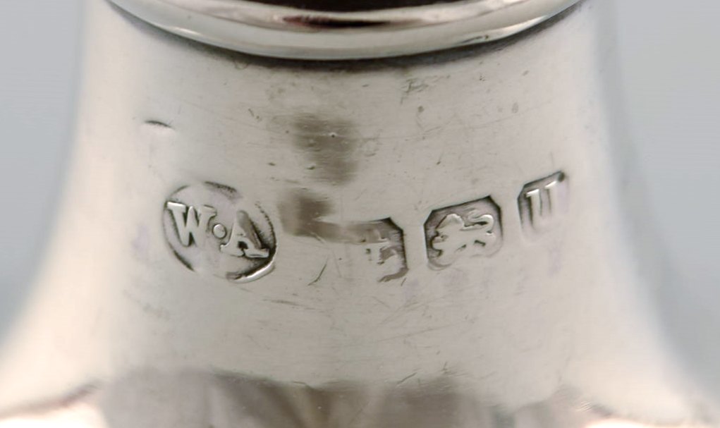 Engelsk peberbøsse i sølv. Sent 1800-tallet. Fra stor privatsamling.