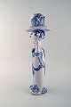 Bjørn Wiinblad keramik, blå dame med to fugle. Dekorationsnummer M36. Dateret 2000. Højde 39 cm. Diameter 15 cm. I perfekt stand.