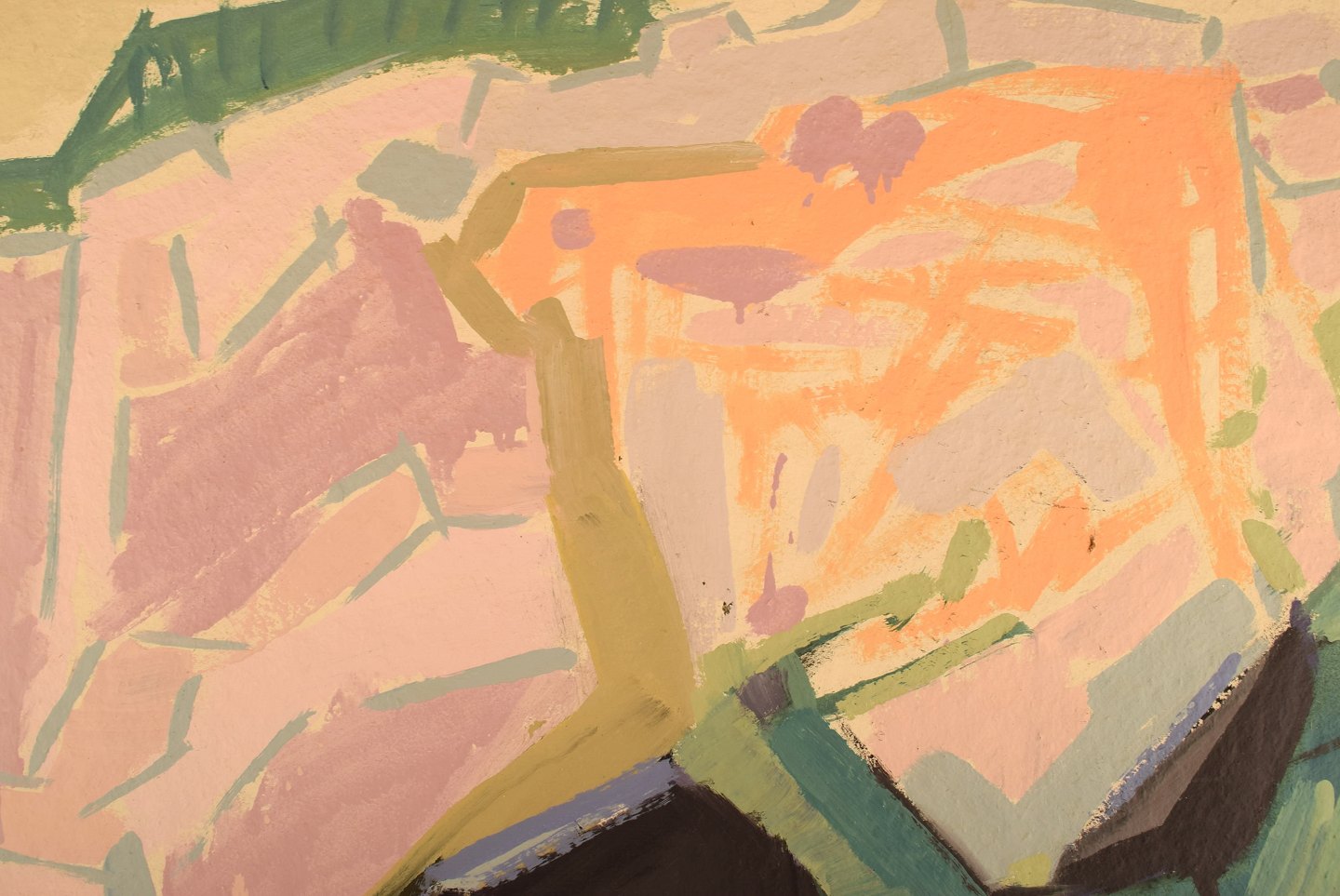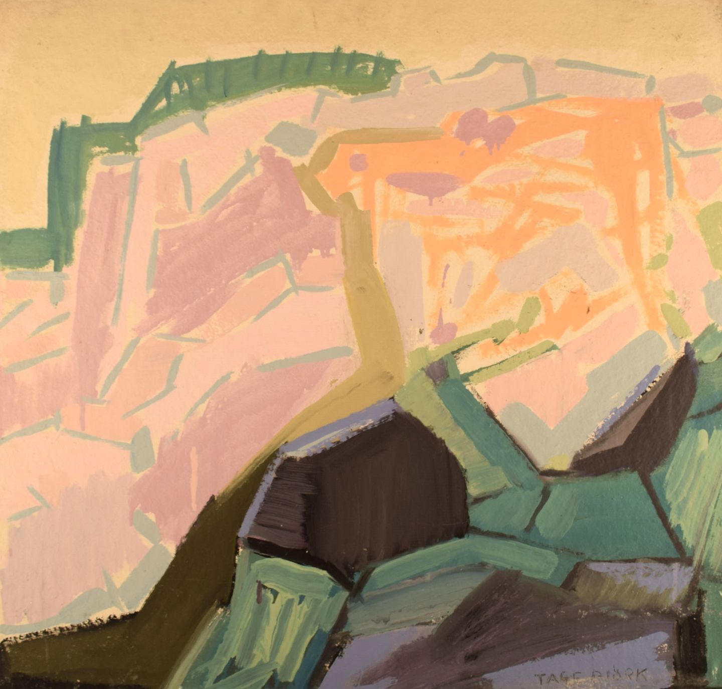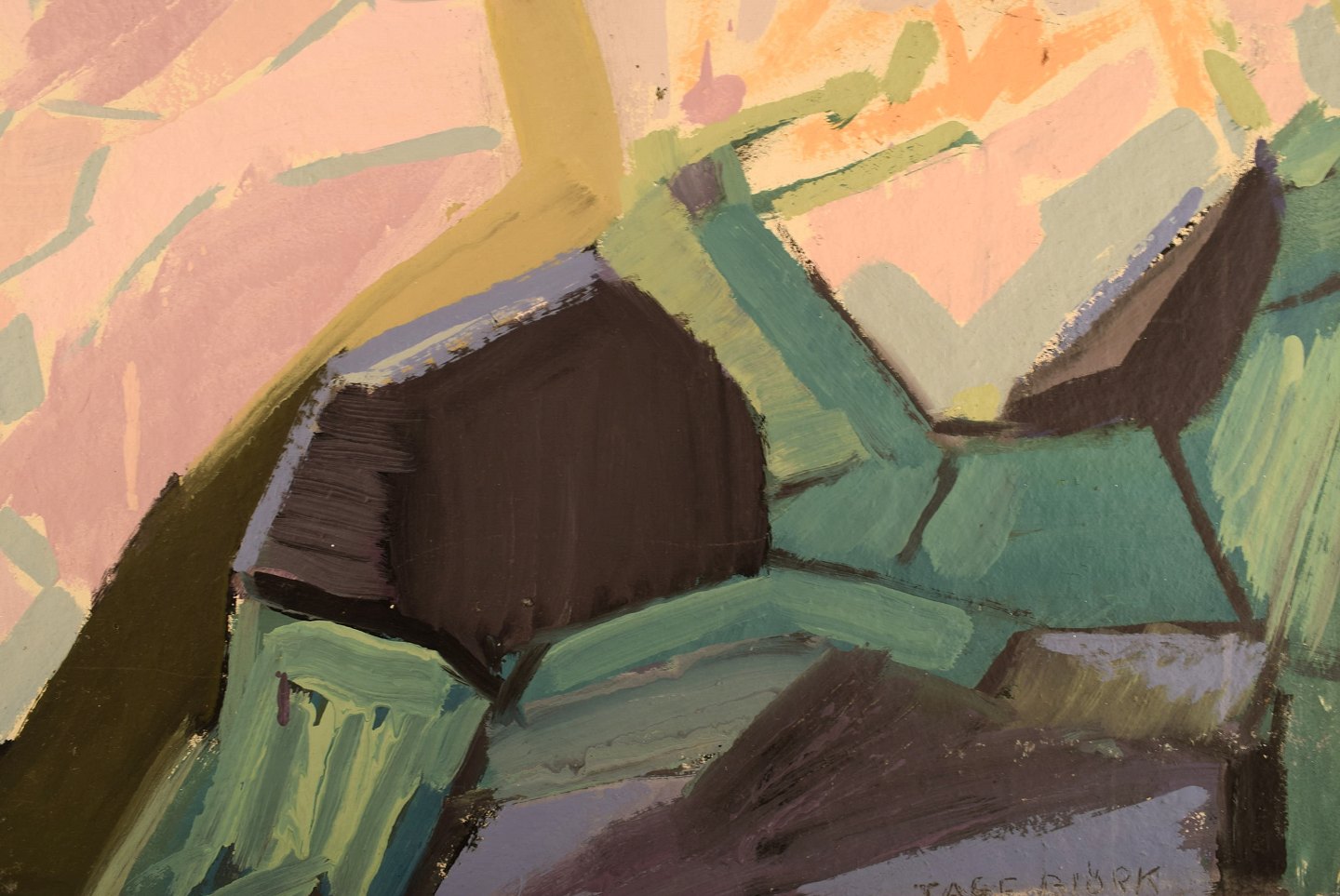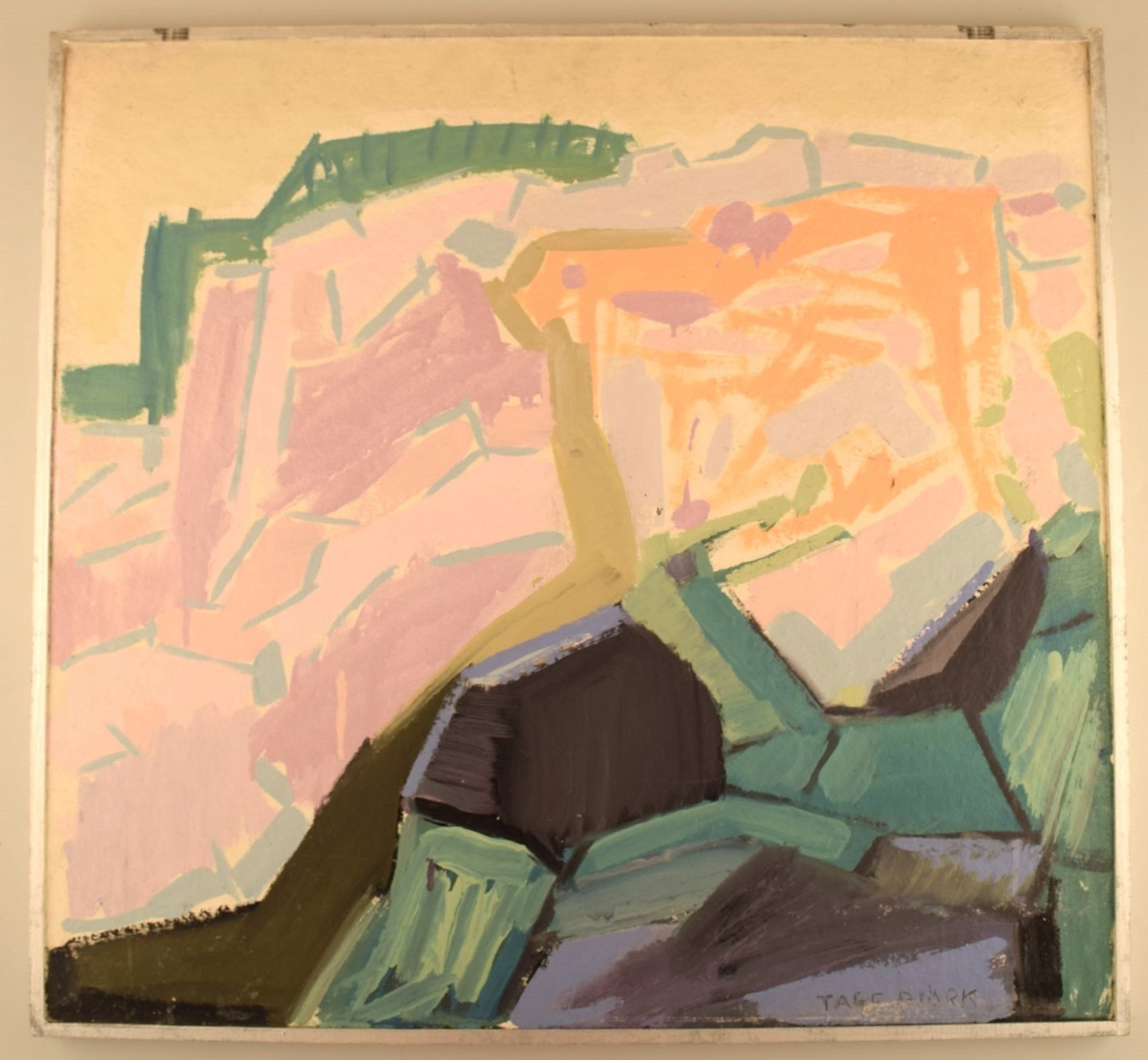 Tage Björk (1909-1980). Modernistisk landskab. Olie på plade. 1960'erne.