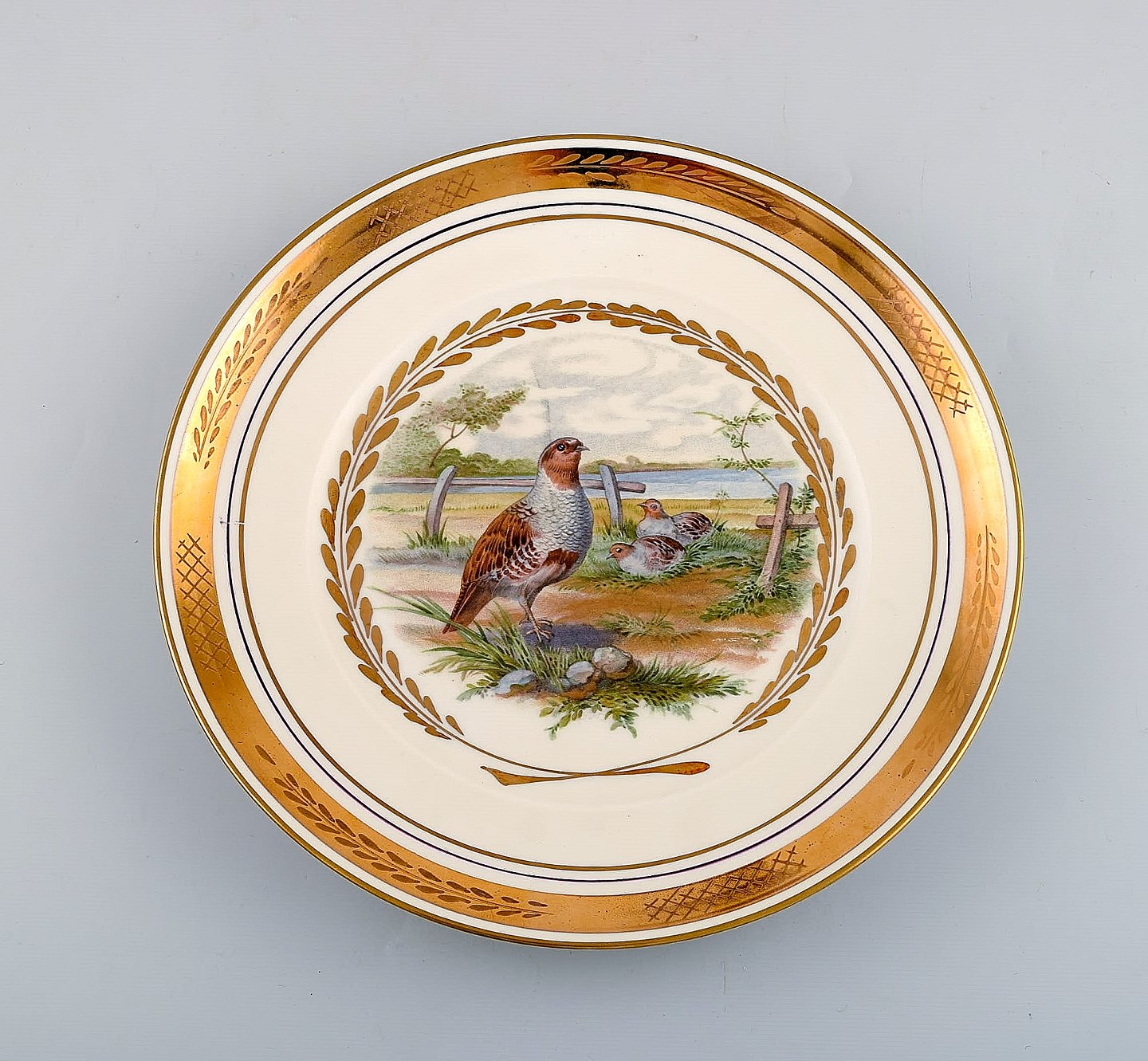 Royal Copenhagen. Sæt på seks store middags- / dekorationstallerkener med håndmalede fuglemotiver. Dateret 1960. I flot stand. 3. Sortering. Måler: 27,5 cm.