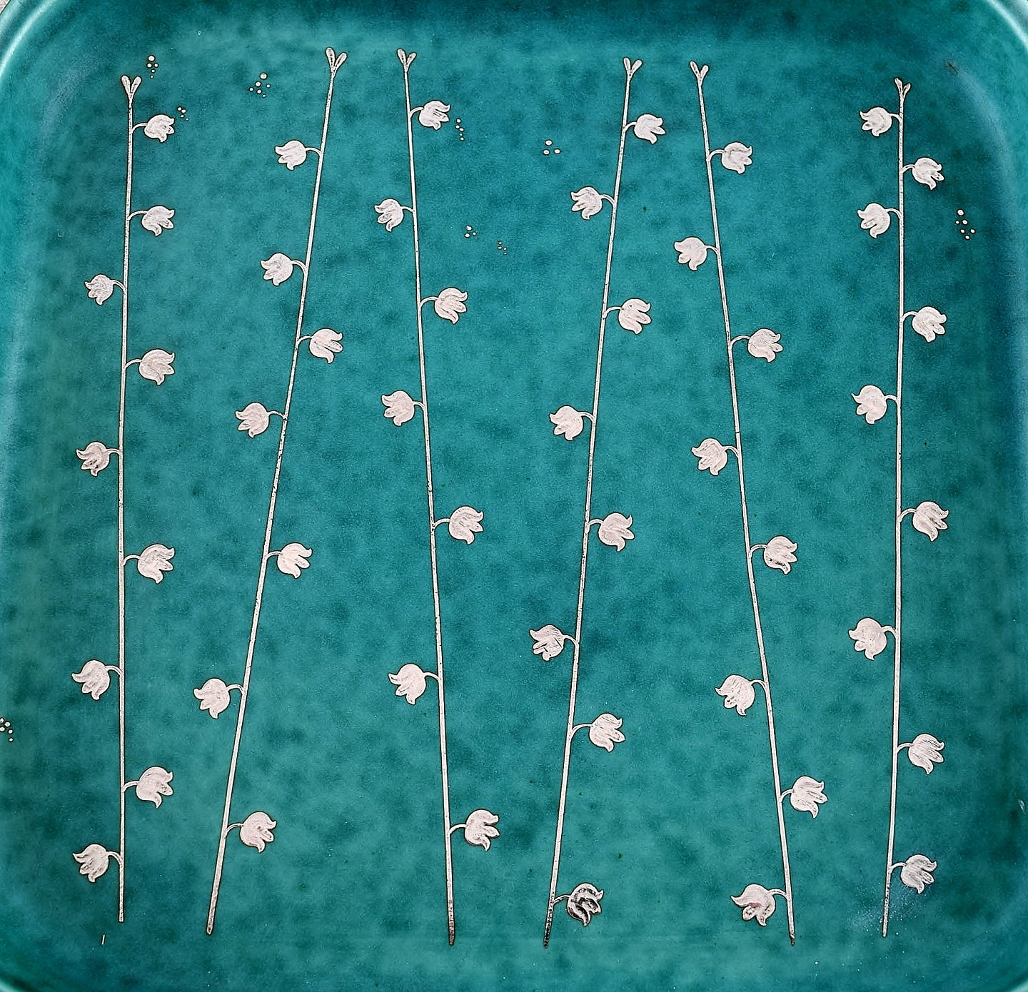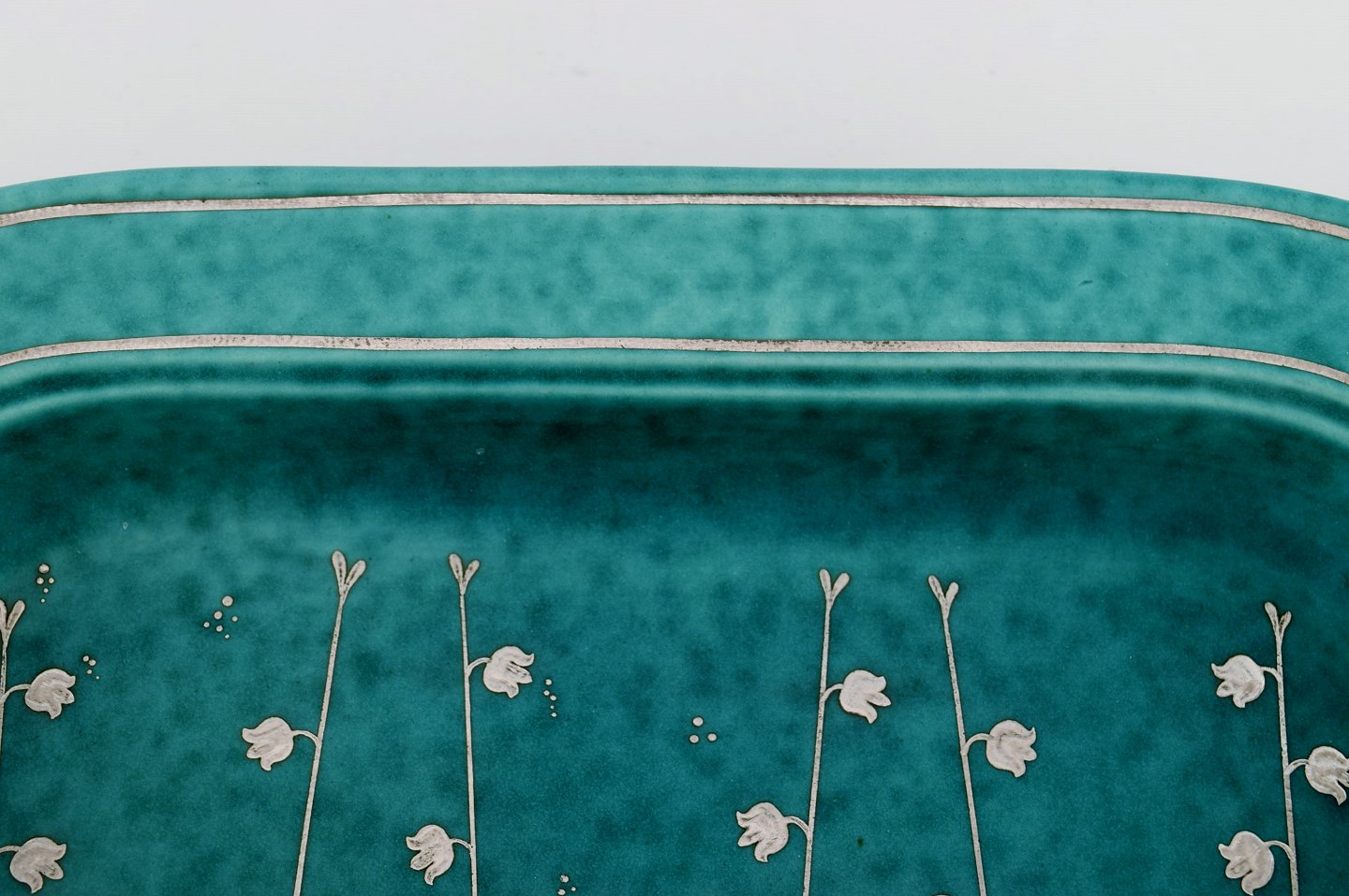 Wilhelm Kåge for Gustavsberg. Stort Argenta fad i keramik dekoreret med grene og blade i sølvindlæg. Sverige 1940´erne. Måler: 35,5 x 5 cm. Stemplet: Gustavsberg, Kåge. I flot stand.
