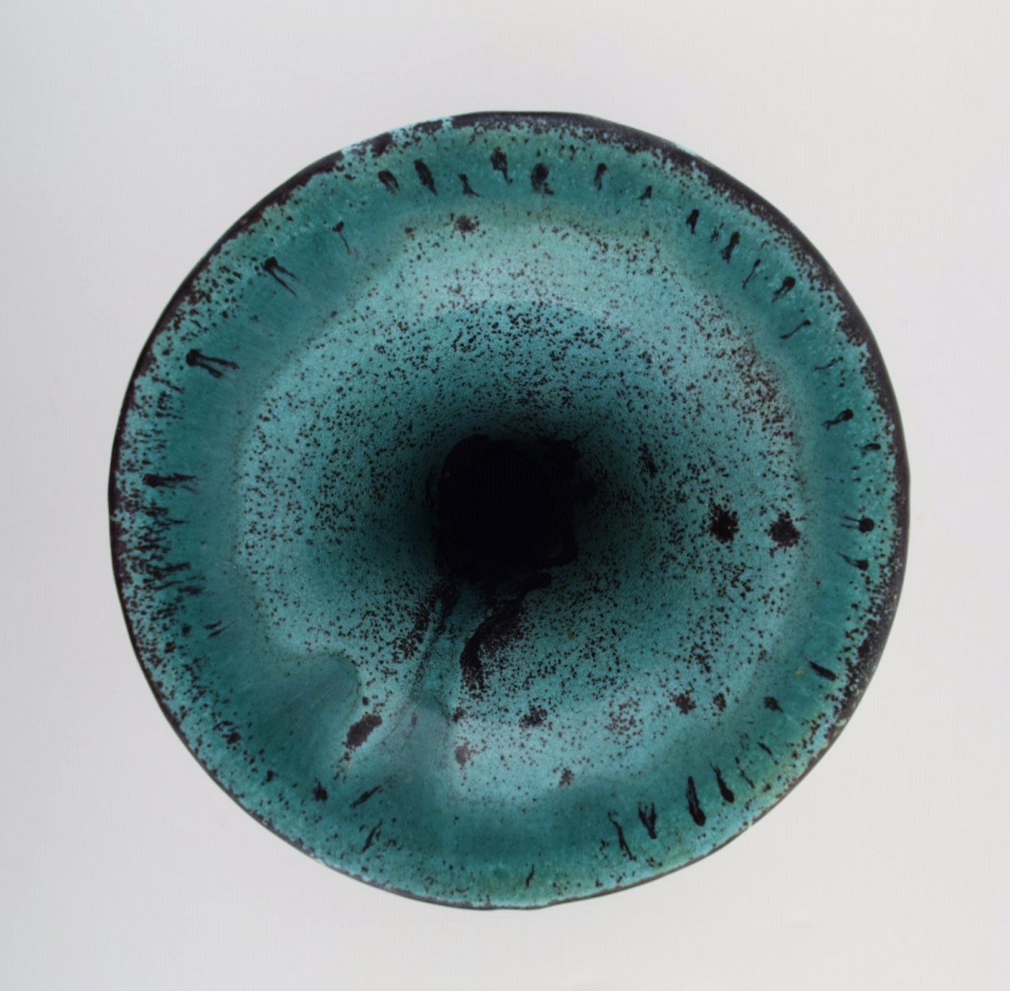 Svend Hammershøi for Kähler, HAK. Stor vase i glaseret stentøj. Smuk grøn sort dobbeltglasur 1930/40'erne. Måler: 31,5 x 14 cm. Stemplet. I flot stand.