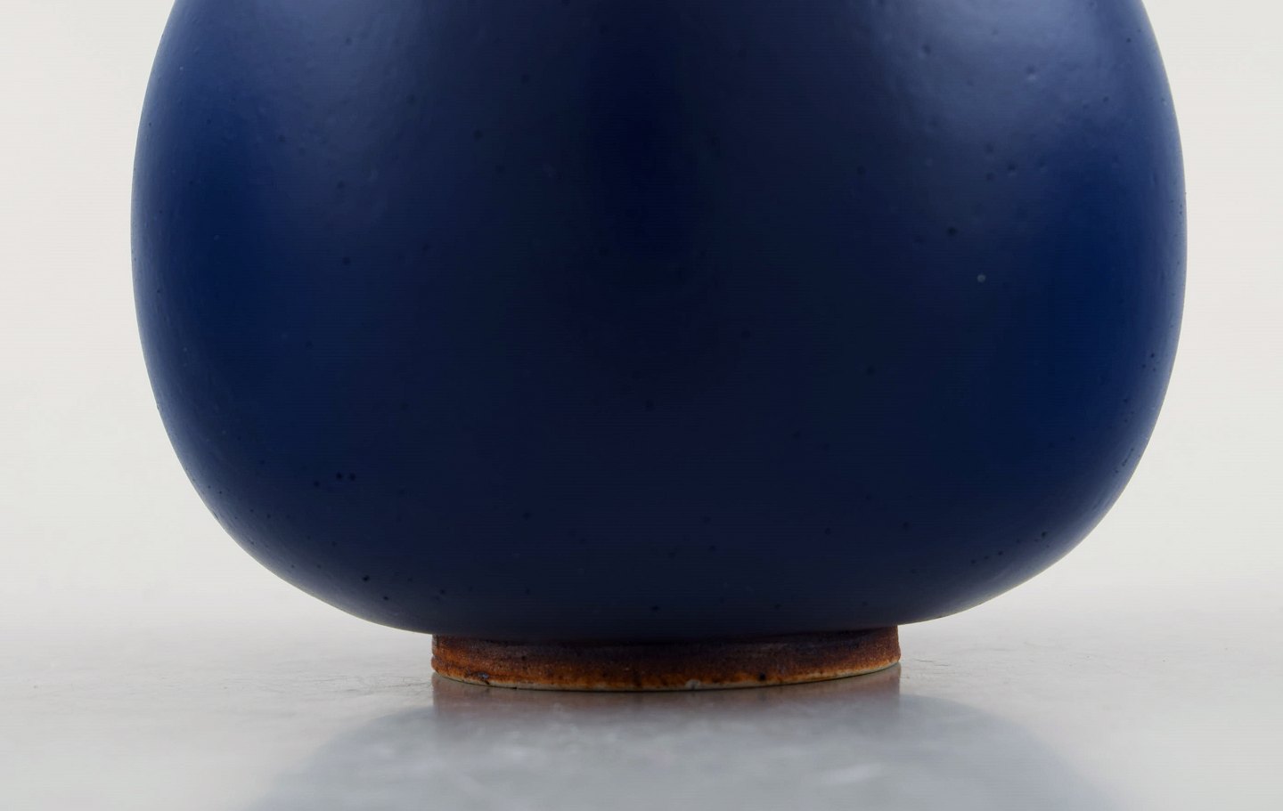 Saxbo / Hans Hansen. Marmeladekrukke i glaseret keramik med låg og ske i sølv. Smuk glasur i dybe blå nuancer. 1940/50'erne.