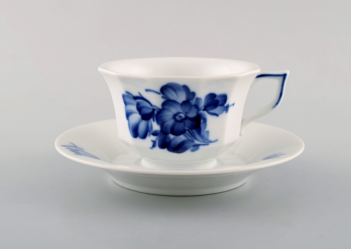 Royal Copenhagen blå blomst kantet sæt på 6 kaffekopper med underkopper samt seks kagetallerkener.