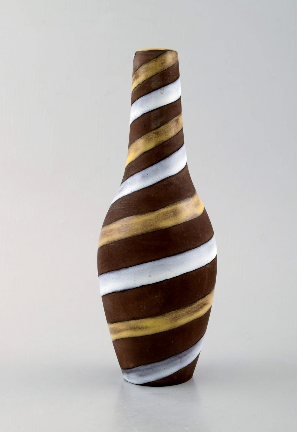 Ingrid Atterberg for Upsala-Ekeby. Vase i glaseret keramik. Spiral design, midt 1900-tallet. Måler: 20 x 8 cm. I flot stand. Stemplet.