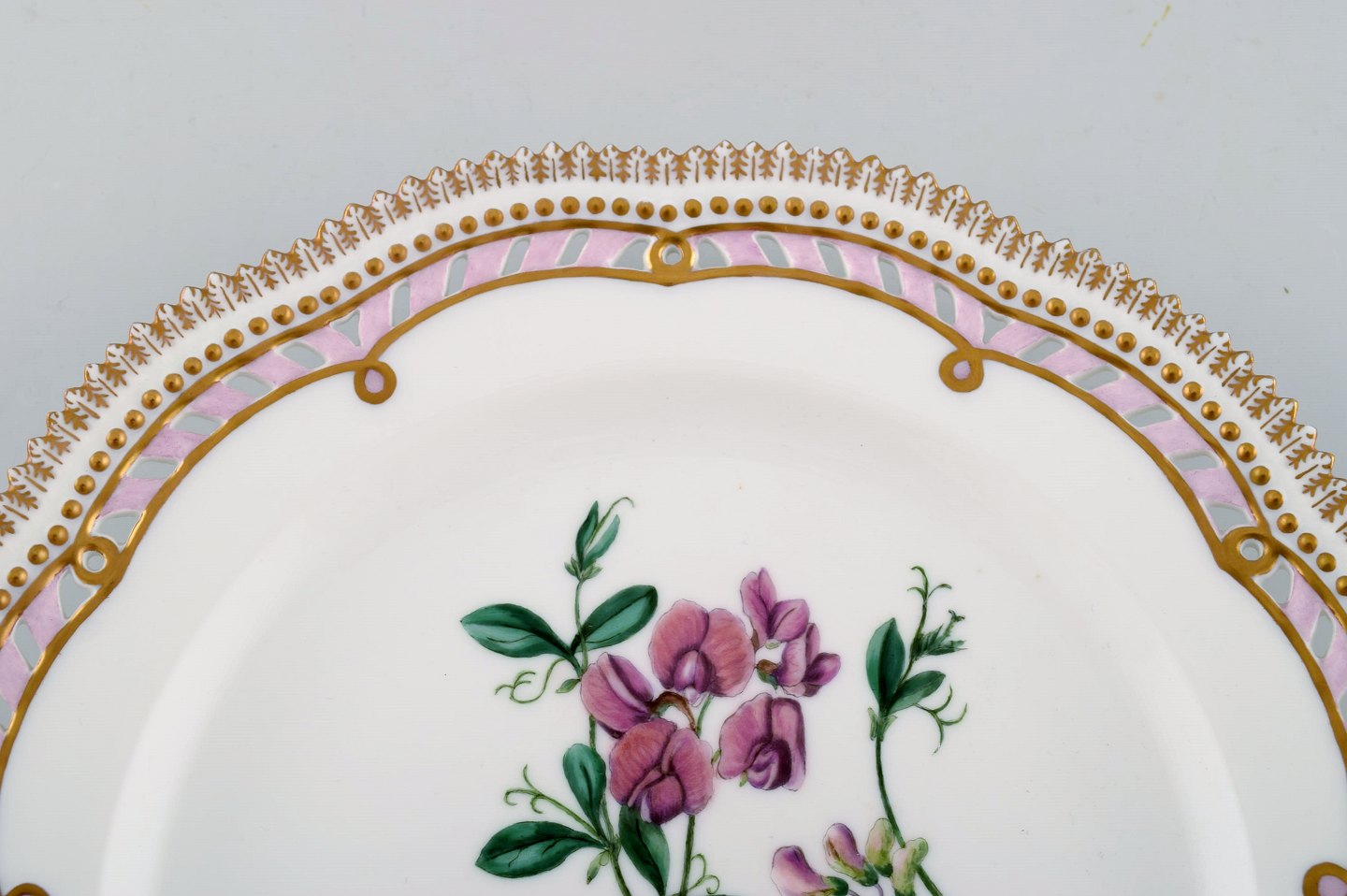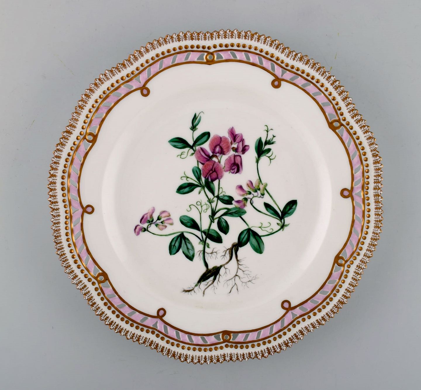 Royal Copenhagen flora danica gennembrudt middagstallerken. Dateret 1956. 25,5 cm. i diameter. 2. sortering. I perfekt stand. Stemplet.