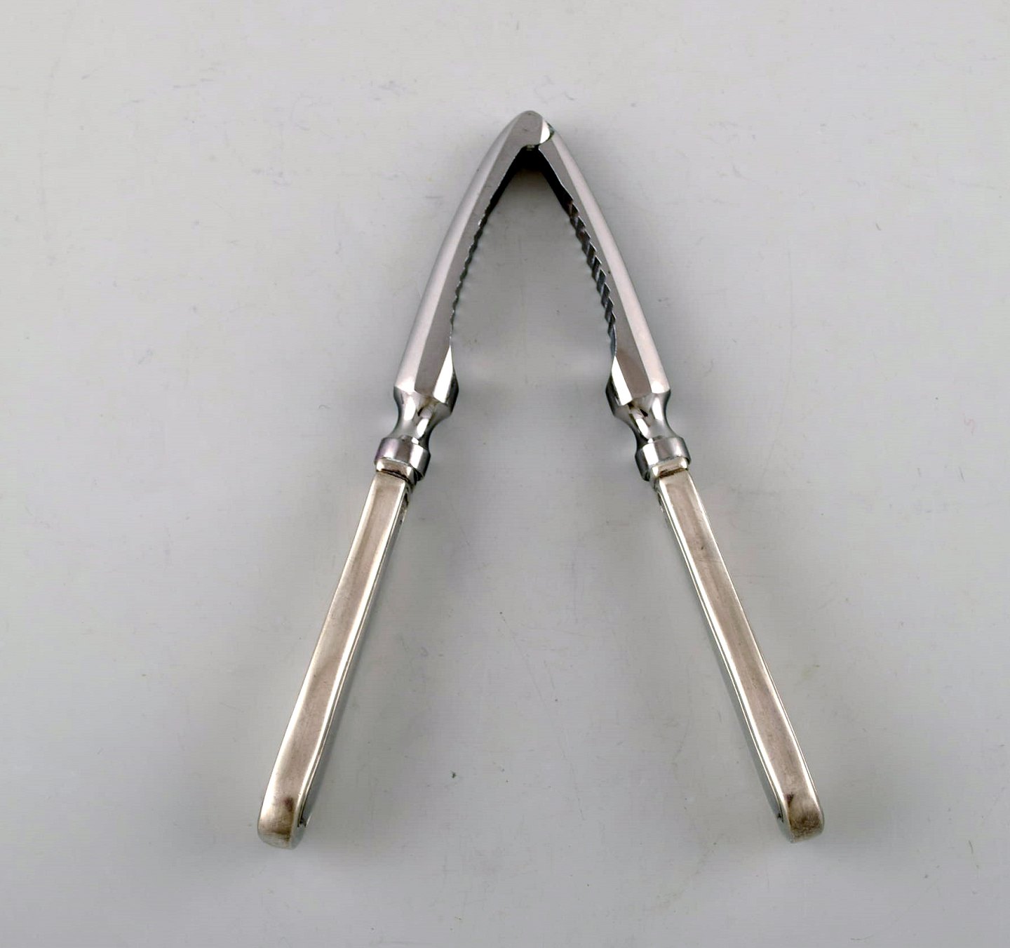 Sjælden Georg Jensen Dobbeltriflet nøddeknækker i sterlingsølv og rustfrit stål. I flot stand. Måler: 15 cm. Stemplet. Stort udvalg af Georg Jensen Dobbeltriflet på lager.