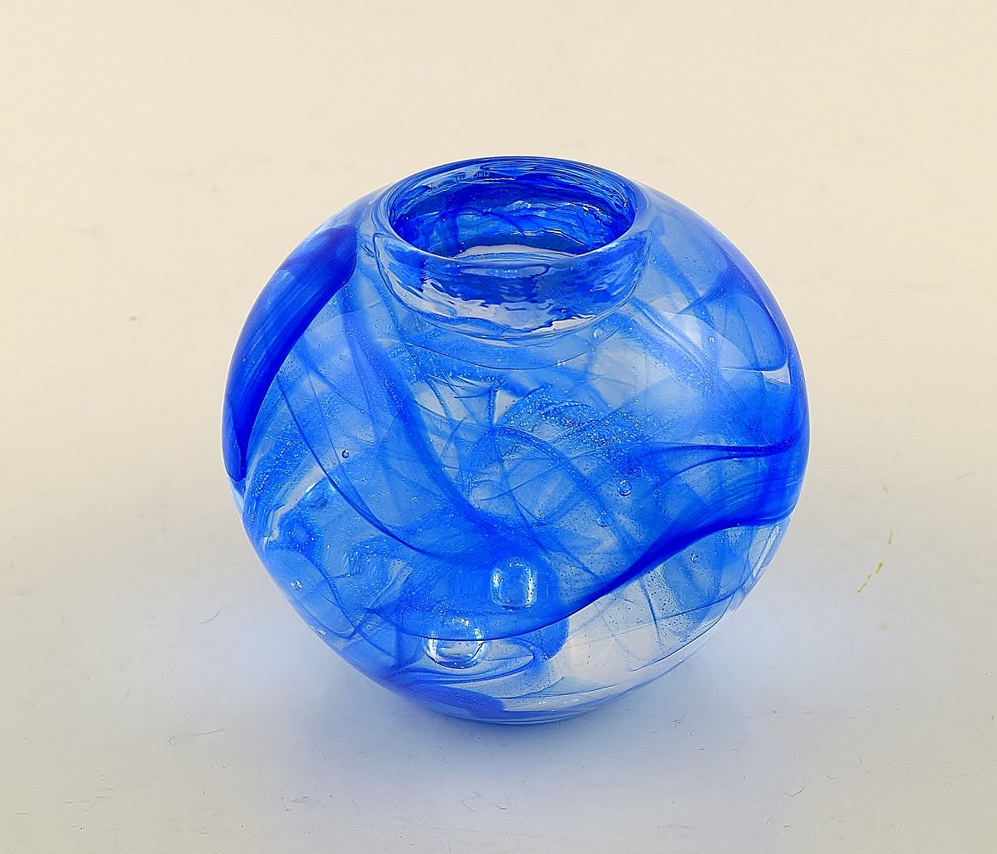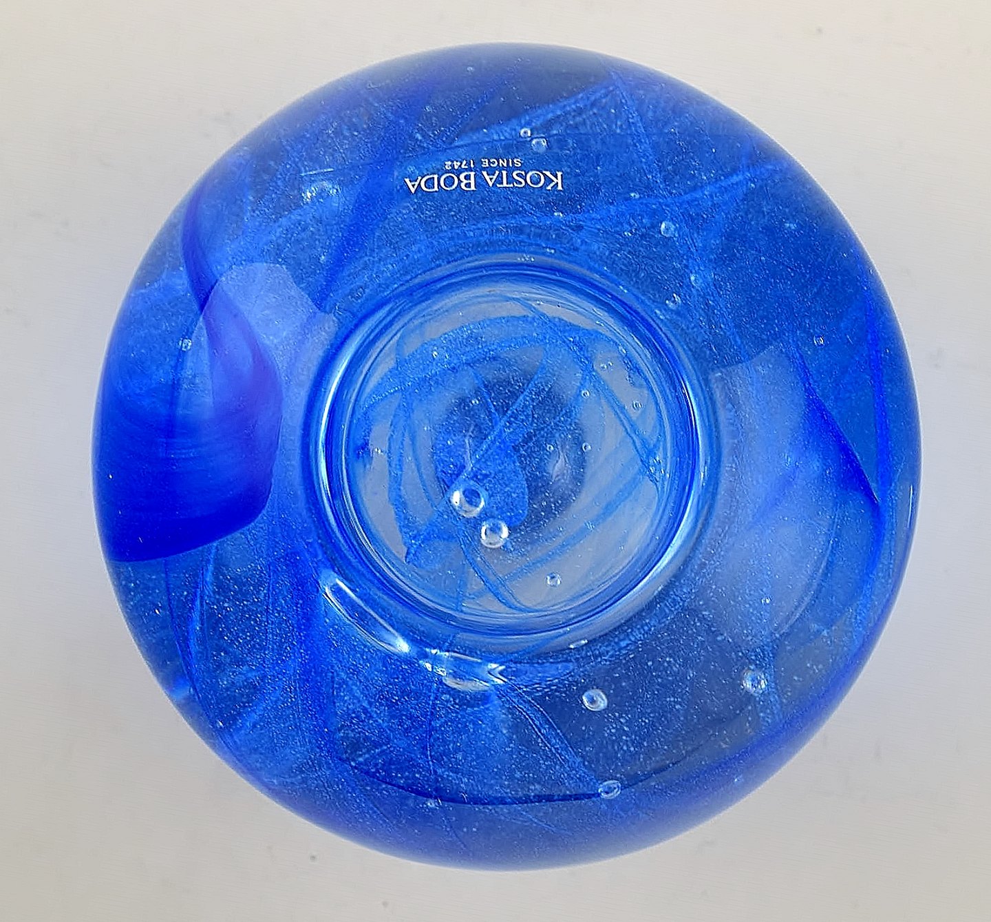 Kosta Boda, Sverige. Rund lysholder i blåt kunstglas. Sent 1900-tallet.