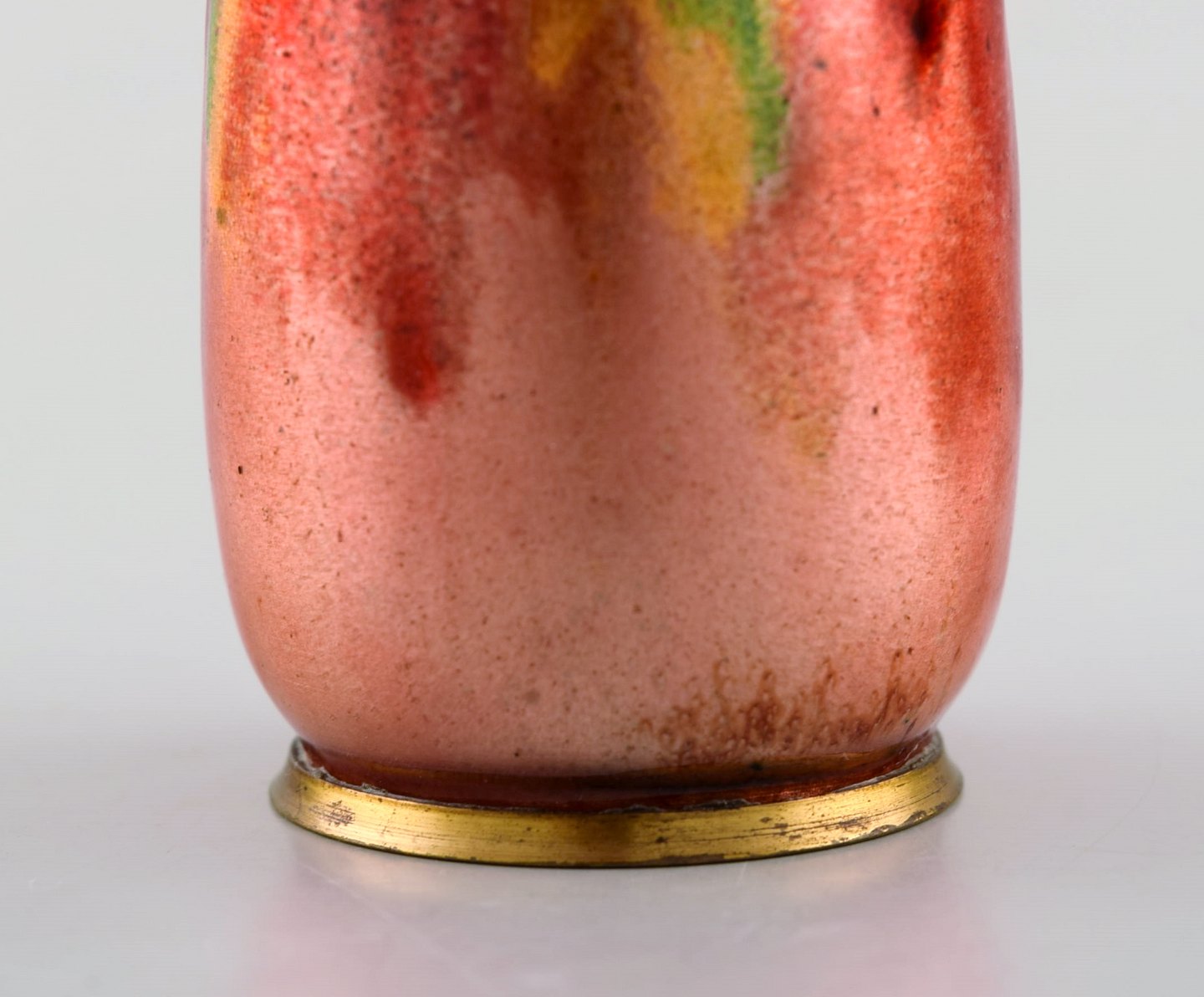 Alexandre Marty for Limoges, Frankrig. Art nouveau bronzevase. Smukt emaljearbejde i røde nuancer. Ca. 1910.