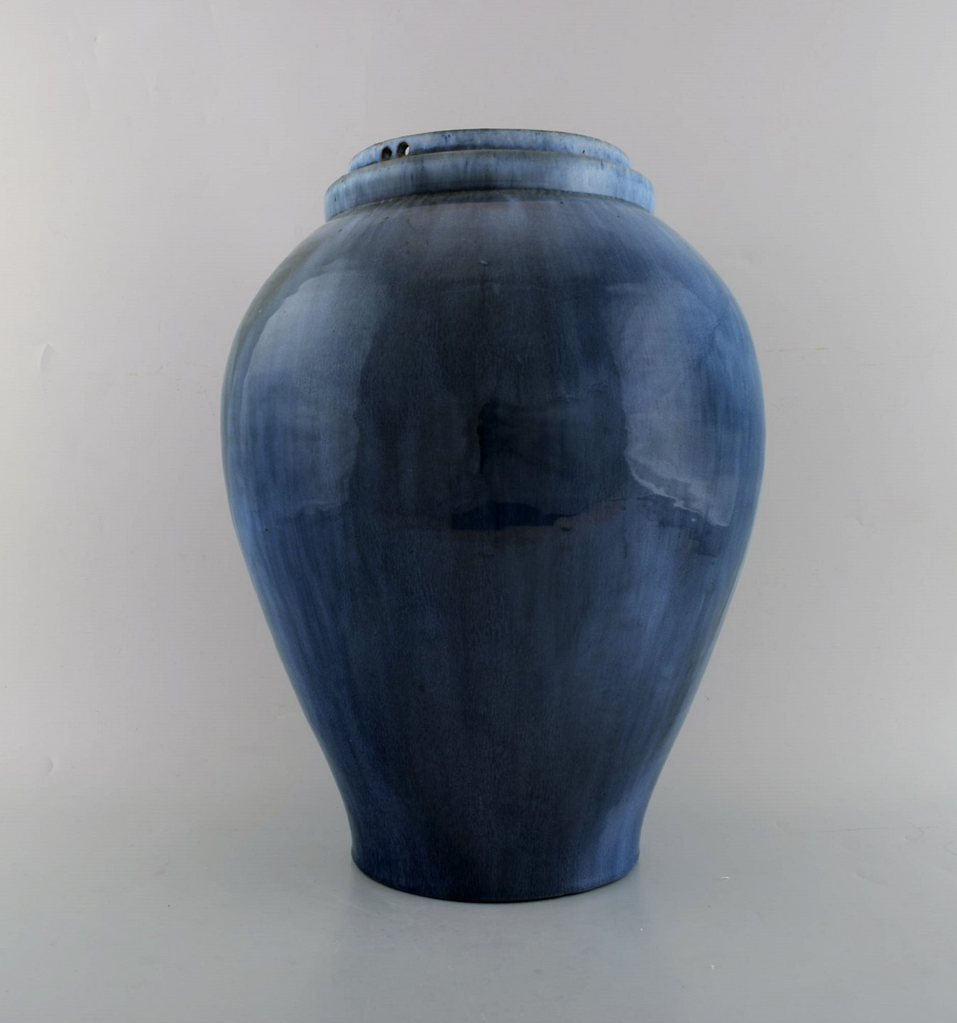 Hegnetslund Lervarefabrik. Stor hængevase i glaseret keramik. Smuk blå løbeglasur. 1950/60'erne. I flot stand. Måler: 35 x 28 cm. Stemplet.