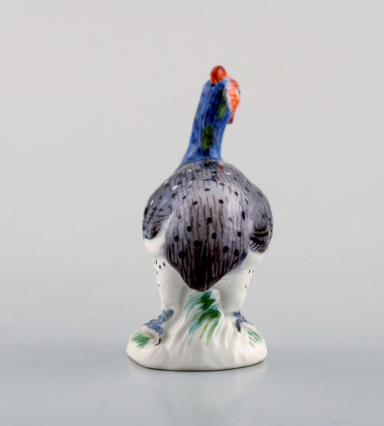 Sjælden antik Meissen miniature figur efter Johann Joachim Kändler i håndmalet porcelæn. Kalkun. Dateret 1850-80. Måler: 5,2 x 4 cm. I flot stand. Stemplet.