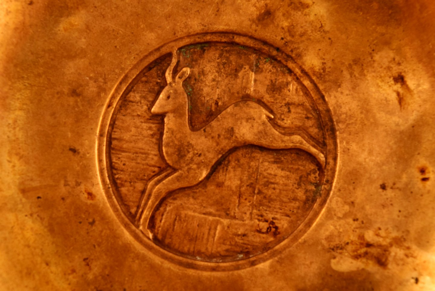 Evan Jensen, Danmark. Art deco skål i bronze med springende buk. 1940'erne. Måler: 14,2 x 2,8 cm. I flot stand. Stemplet.