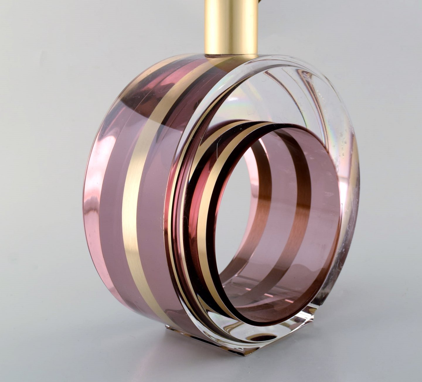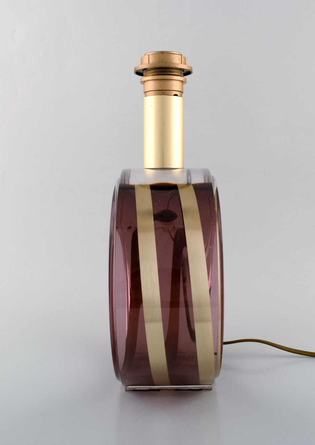 Italiensk design. Bordlampe af indfarvet plexiglas og messing. 1970'erne. Måler: 33 x 22 cm. I flot stand.
