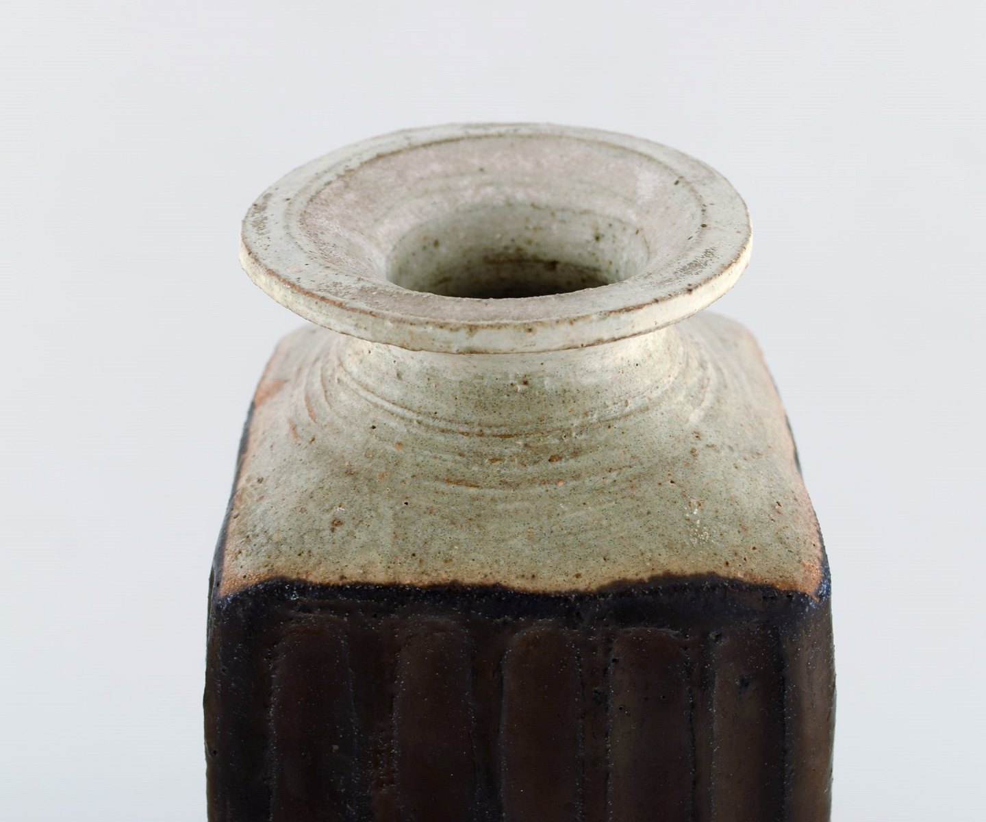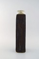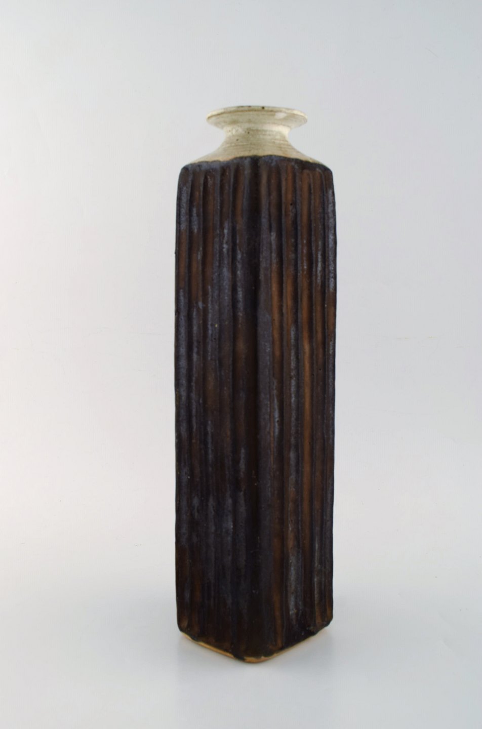 Dansk keramiker. Stor unika vase i glaseret keramik. Gutte stil. Rakubrændt teknik. 1960'erne. Måler: 38 x 11 cm. I flot stand. Signeret og dateret.