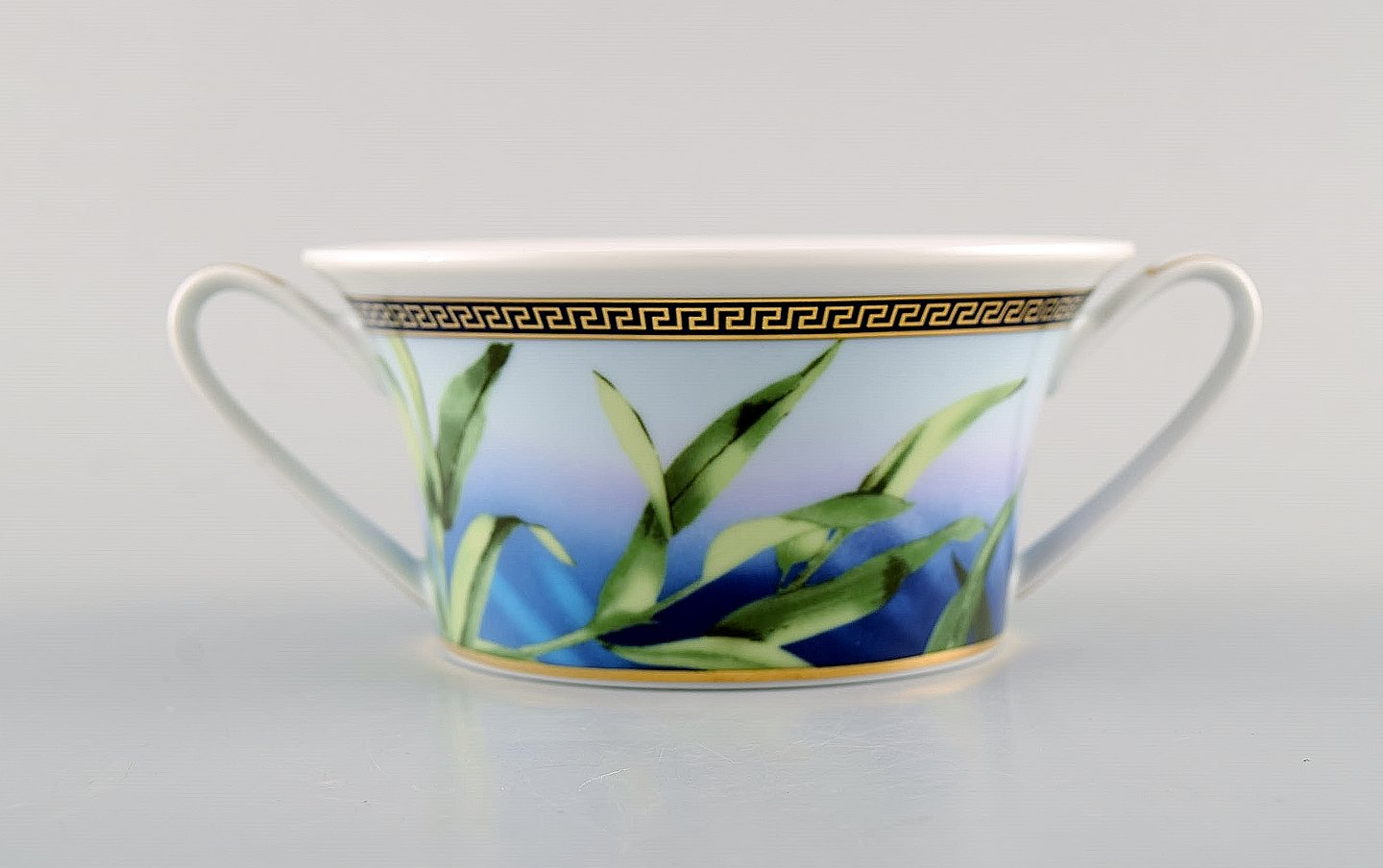 Gianni Versace for Rosenthal. "Jungle" boullionkop med underkop i porcelæn med gulddekoration og grønne blade. Sent 1900-tallet.