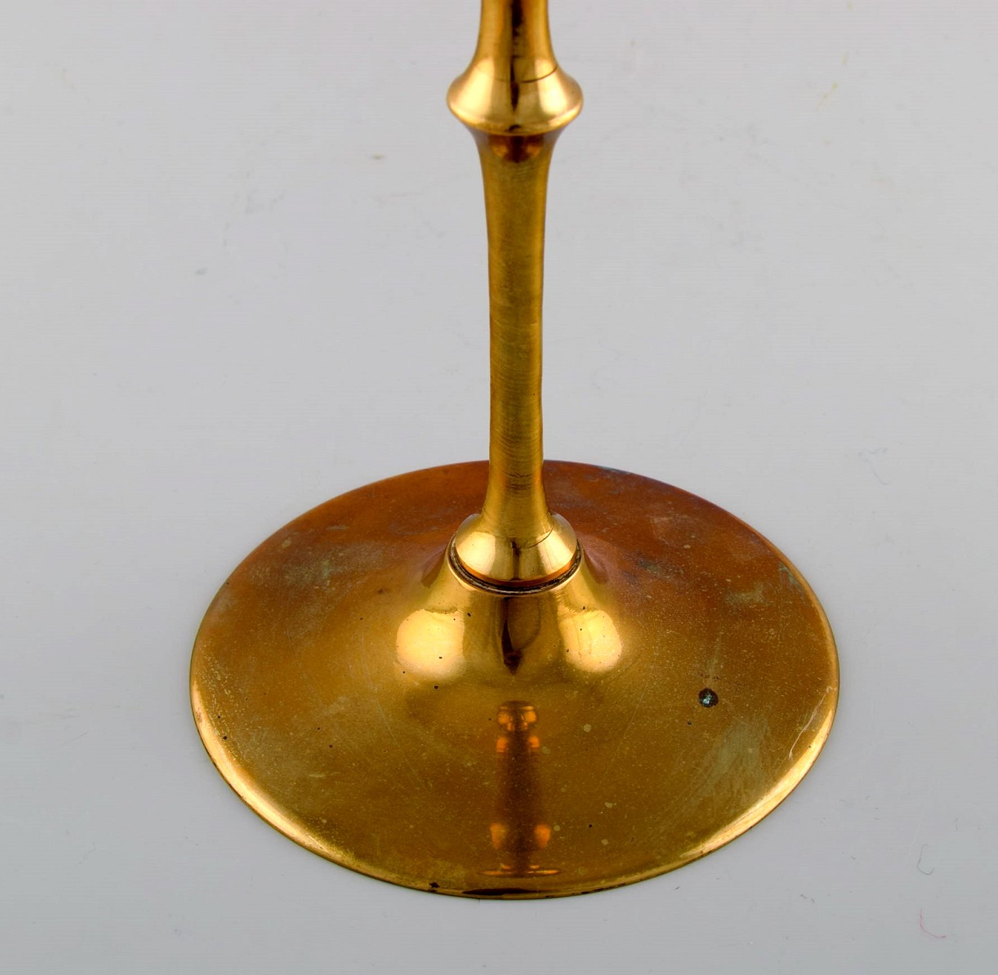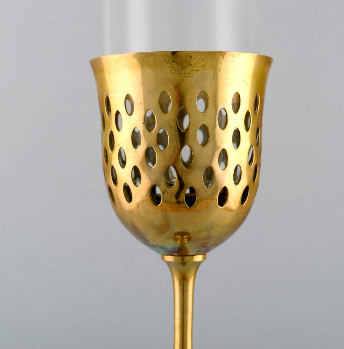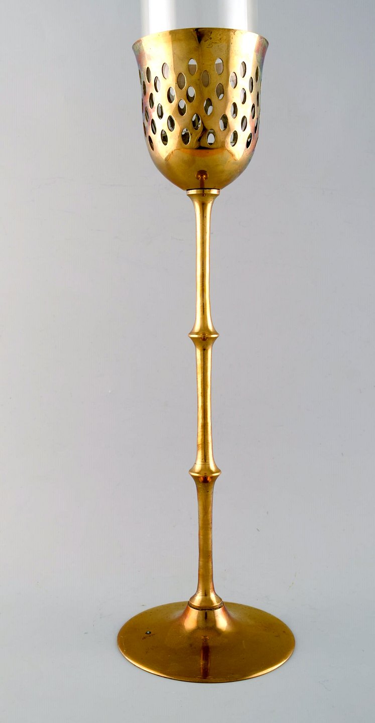 Bjørn Wiinblad (1918-2006). Tall "Hurricane" candle holder in brass with blue tinted glass. 1970's. Measures: 63 x 13 cm. In very good condition. Signed.