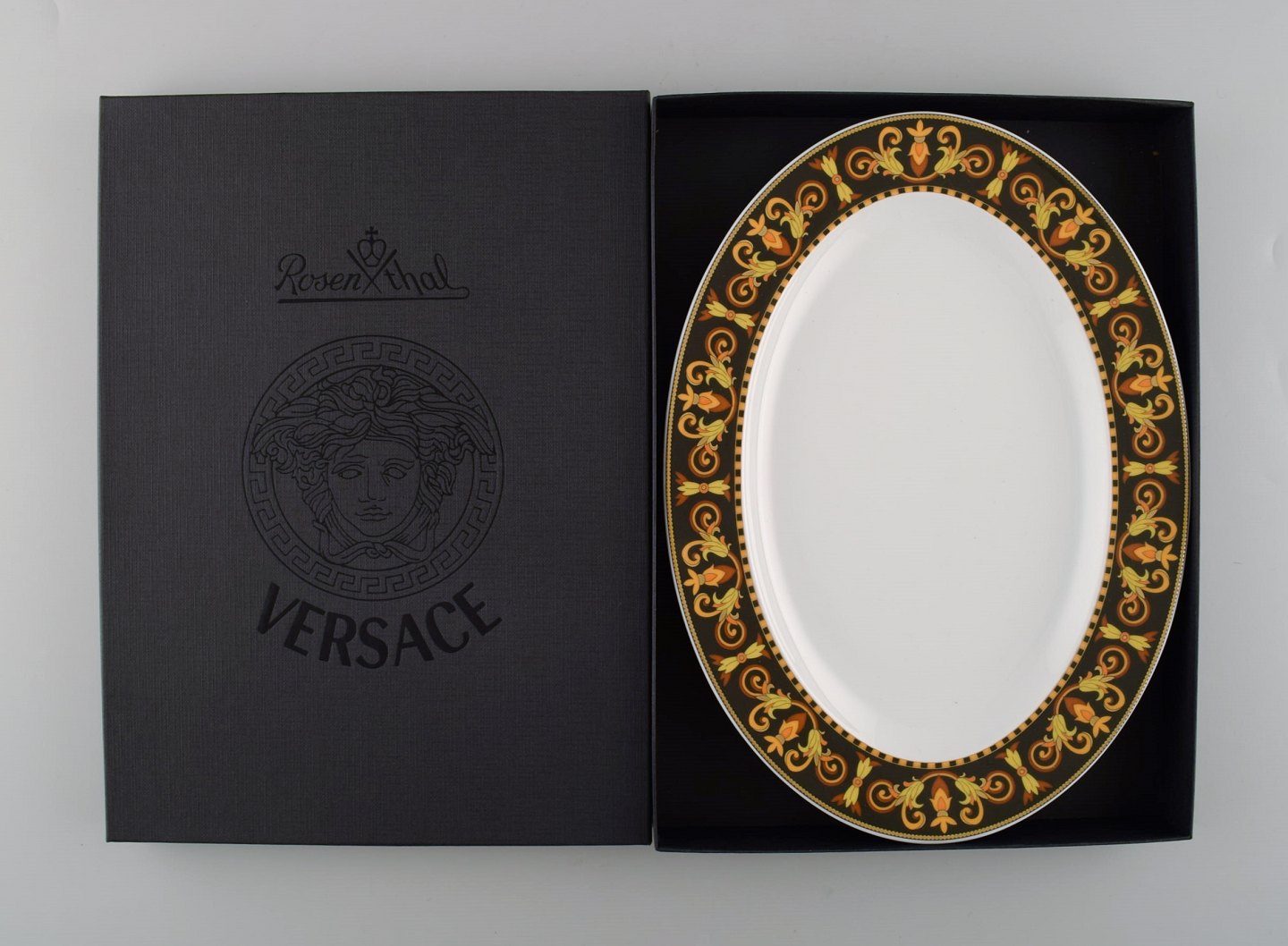 Gianni Versace for Rosenthal. Ovalt "Barocco" fad i porcelæn med gulddekoration. Sent 1900-tallet. I perfekt stand. Måler: 28 x 20,5 cm. Stemplet. Original kasse medfølger.