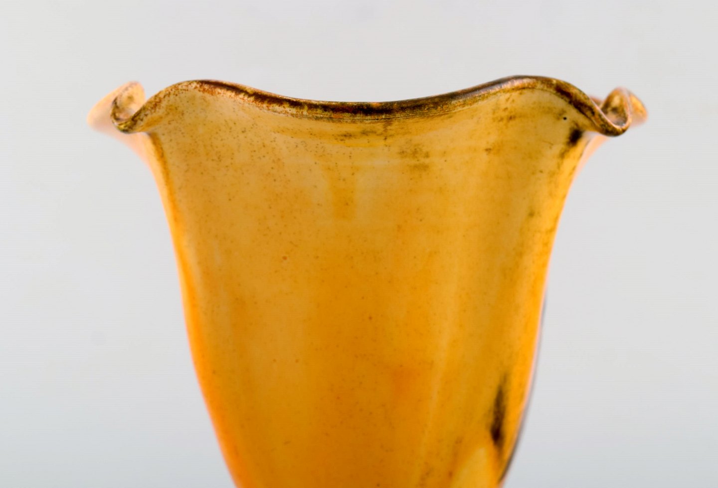 Svend Hammershøi for Kähler, HAK. Vase i glaseret stentøj. Smuk gul uranglasur. 1930/40'erne.