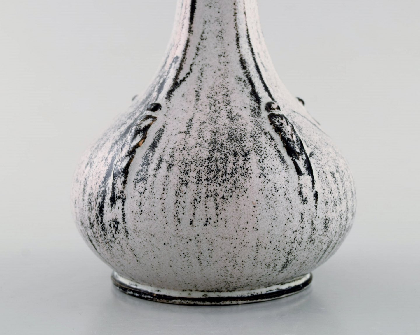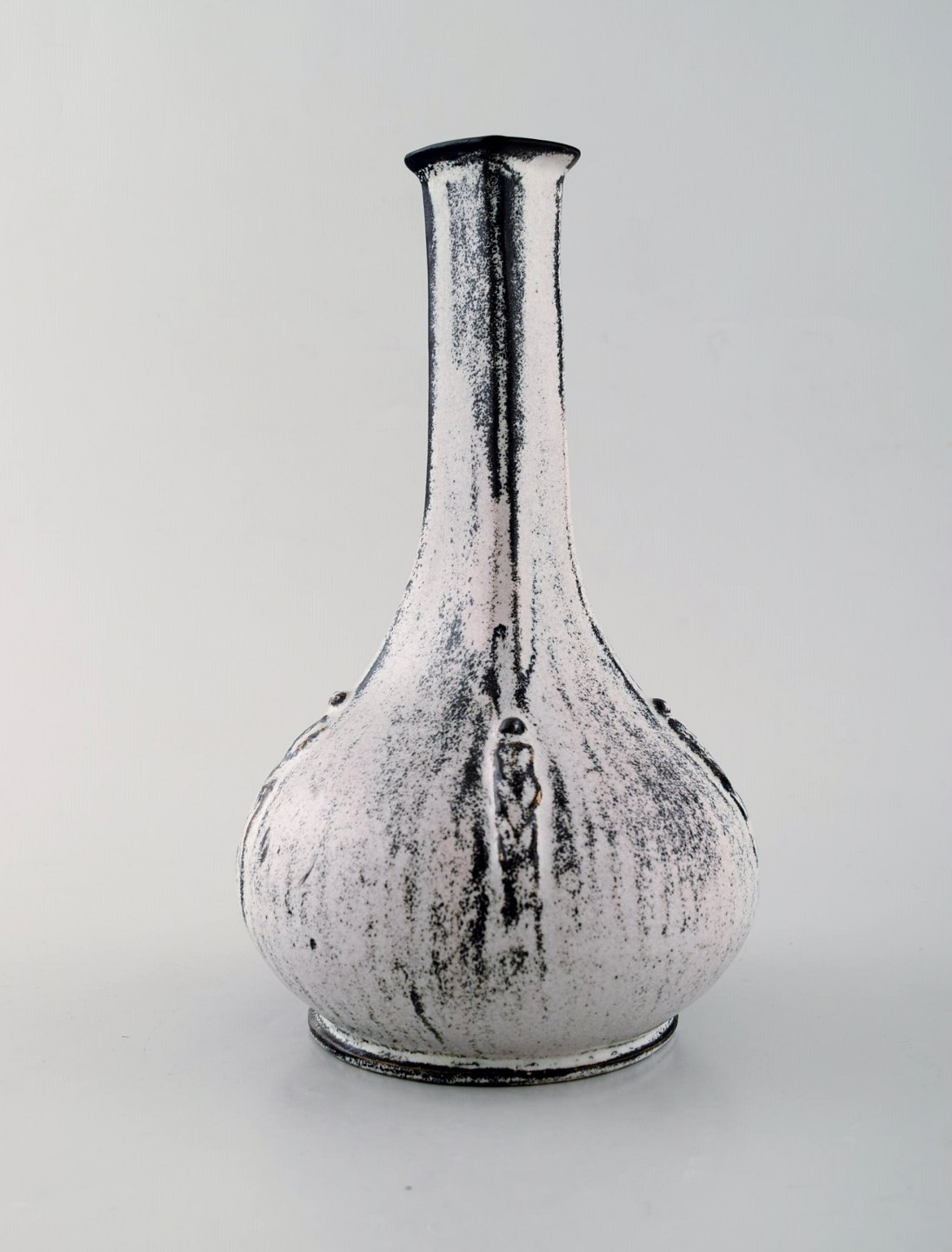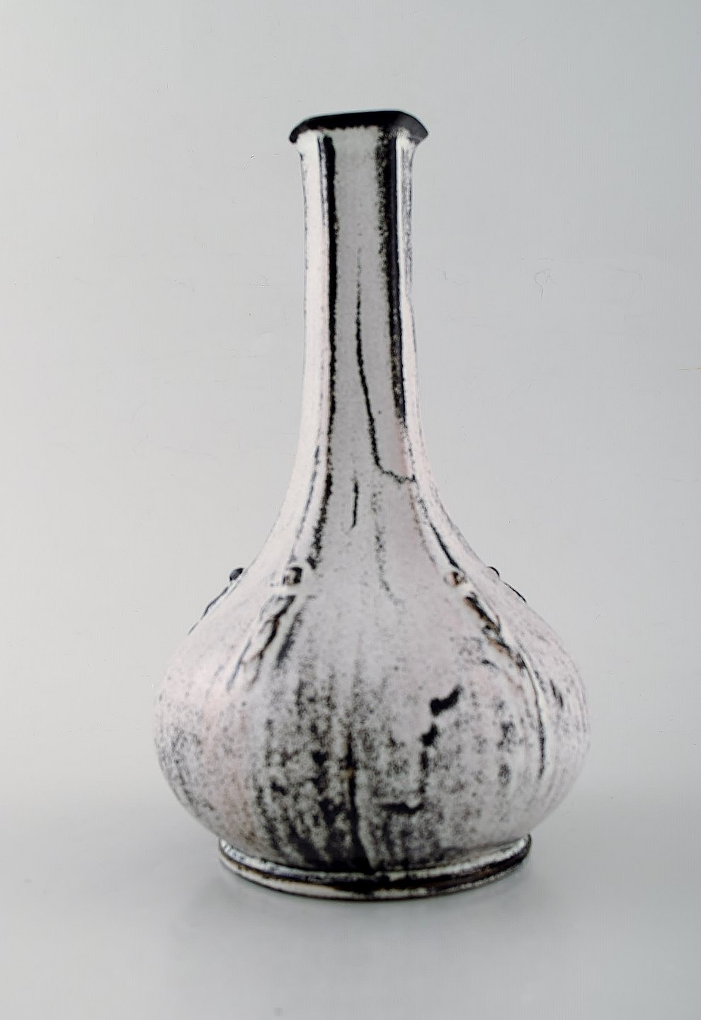 Svend Hammershøi for Kähler, HAK. Smalhalset vase i glaseret stentøj. Smuk gråsort dobbeltglasur. 1930/40'erne. Stemplet. I flot stand. Måler: 22 x 13,5 cm.