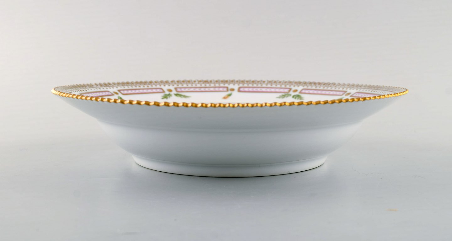 Royal Copenhagen flora danica dyb tallerken #604. Måler: 22 x 4,5 cm. 1. sortering, i perfekt stand. Stemplet.